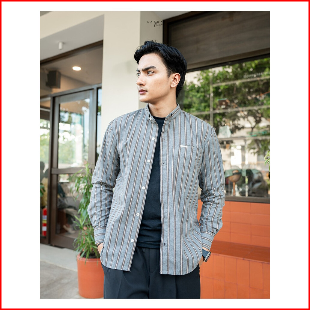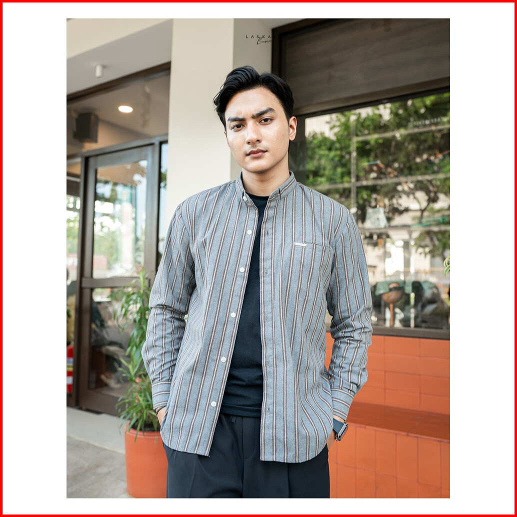Hailuk Lewis Kemeja Stripes Pria Lengan Panjang Premium
