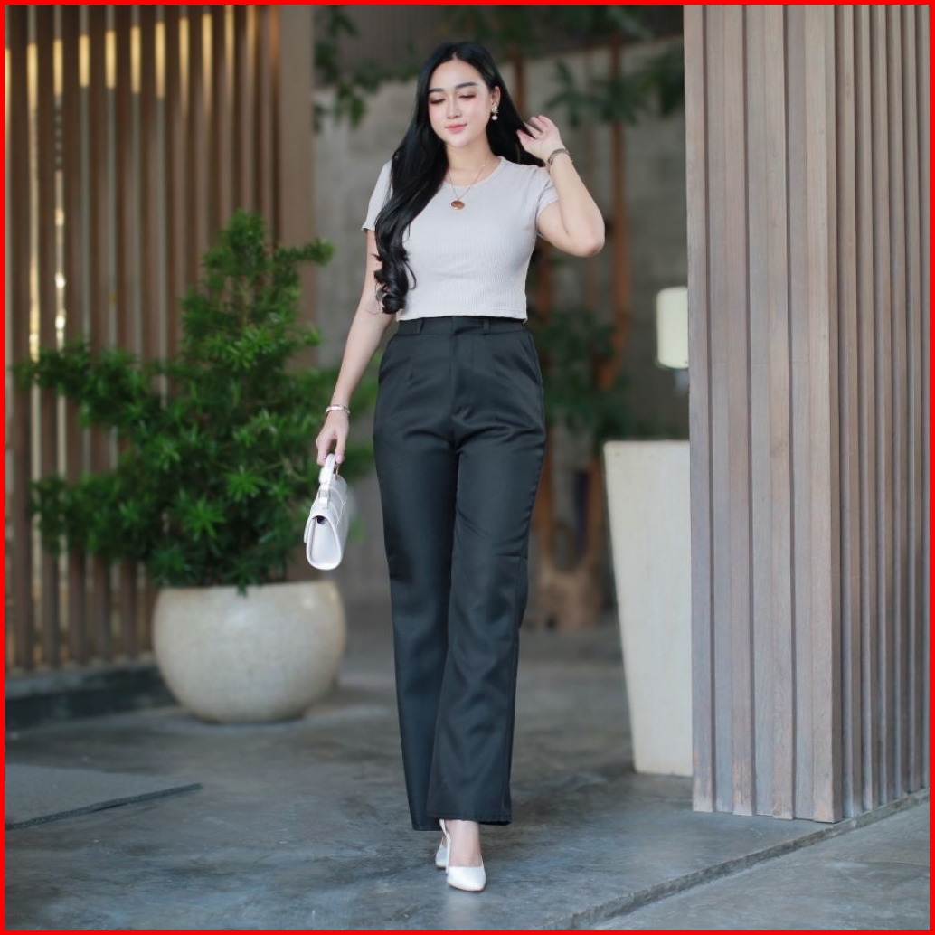 Etta Flared Pants - Highwaist Flare Semiwoll Pants For Women Korean Style Anti Kusut Nyaman