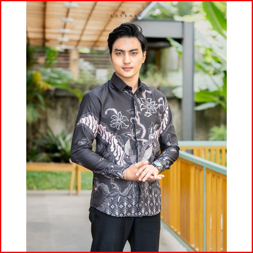 Laskala Batik Premium Tondano Brown Kemeja Batik Pria Slimfit Lengan Panjang
