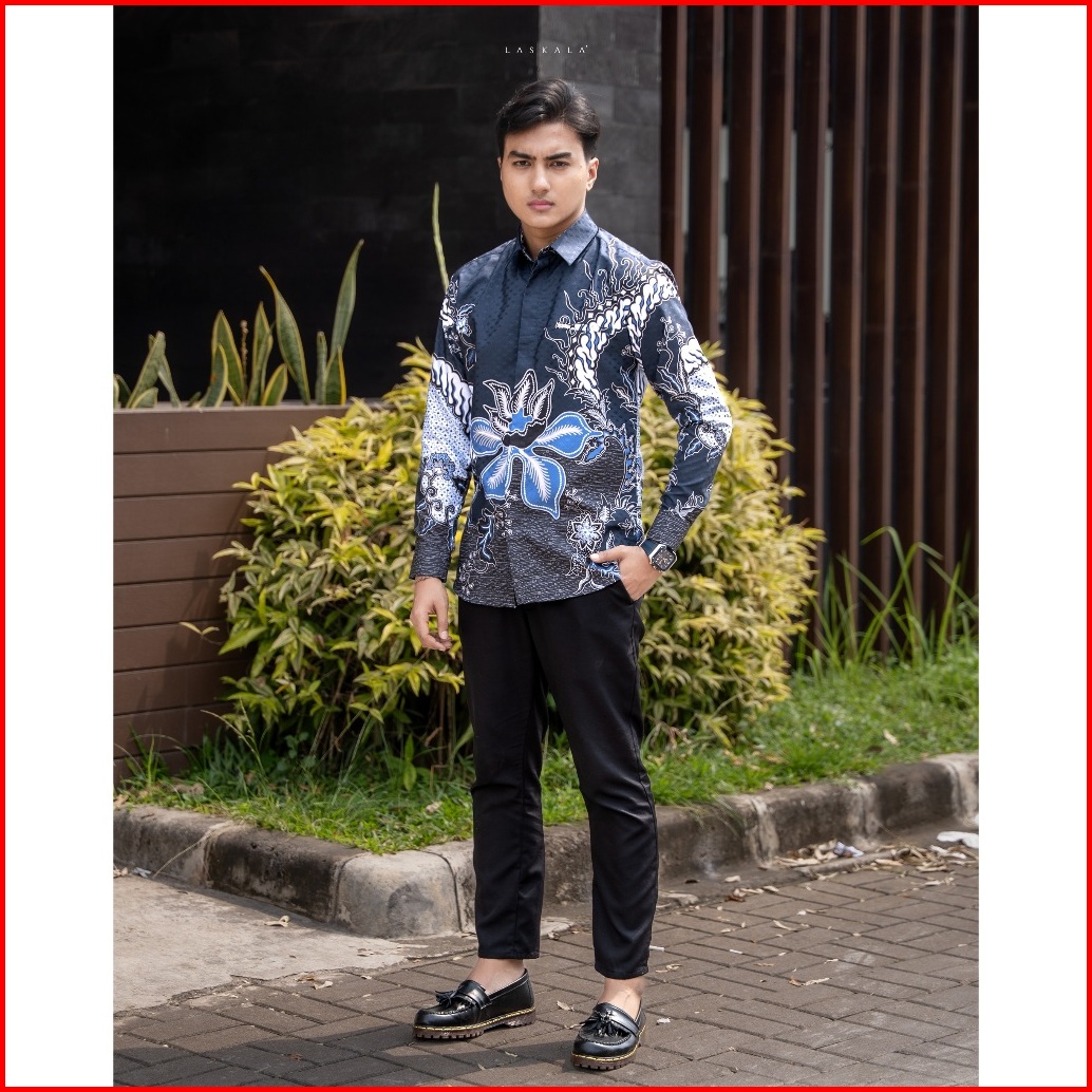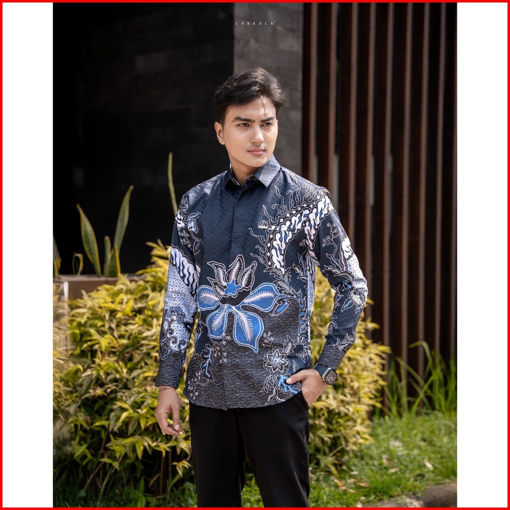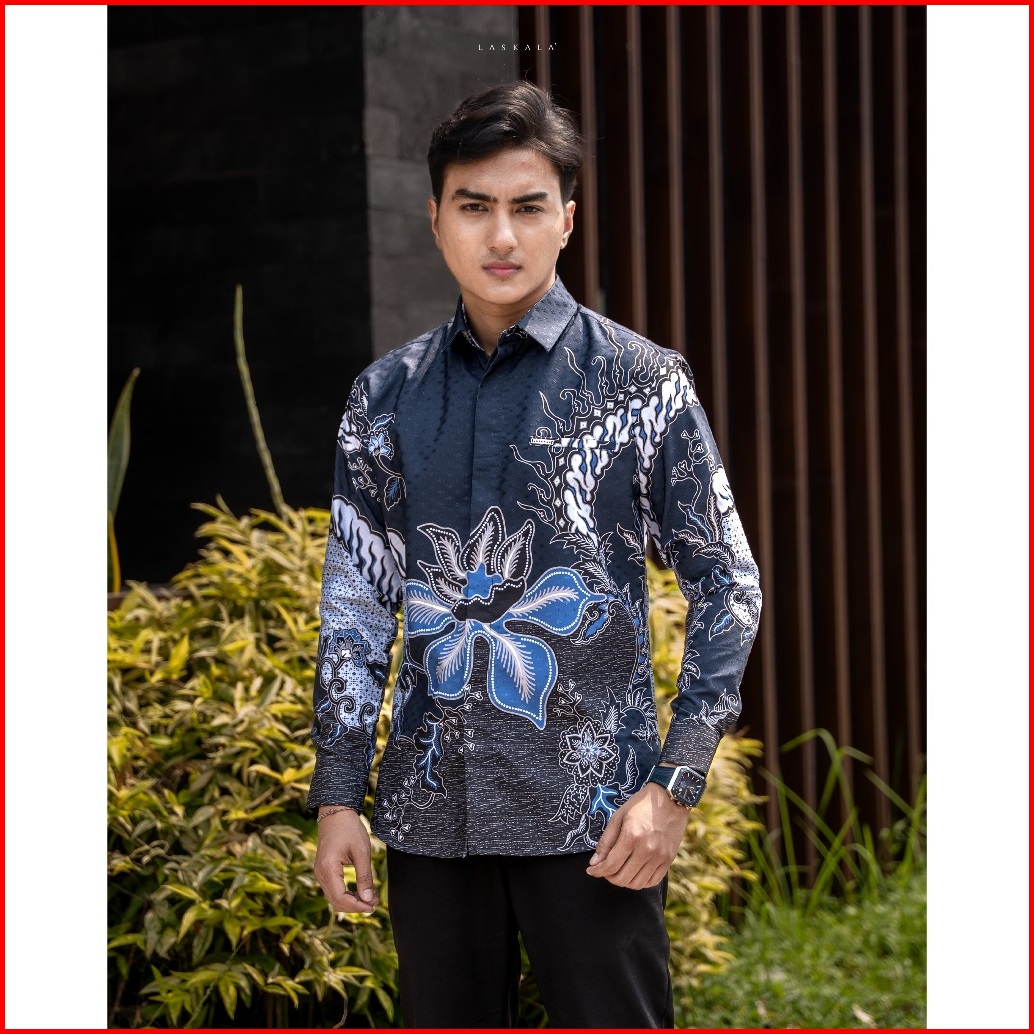 Laskala Batik Premium Daeng Navy Kemeja Batik Pria Slimfit Lengan Panjang