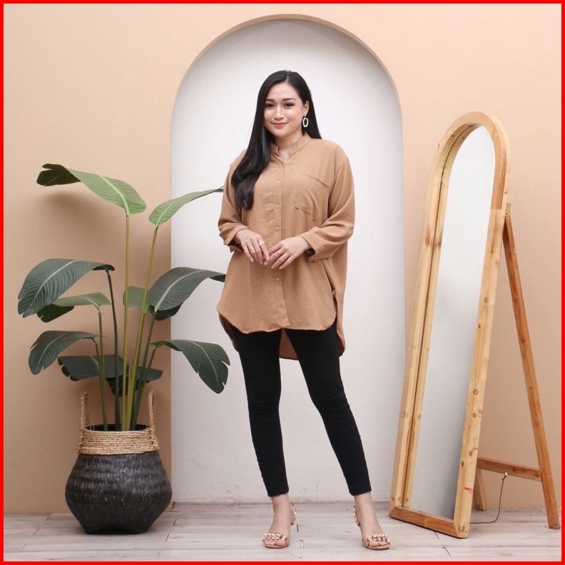 Daily Top Blouse Shakila Kemeja Crinkle Pocket Wanita