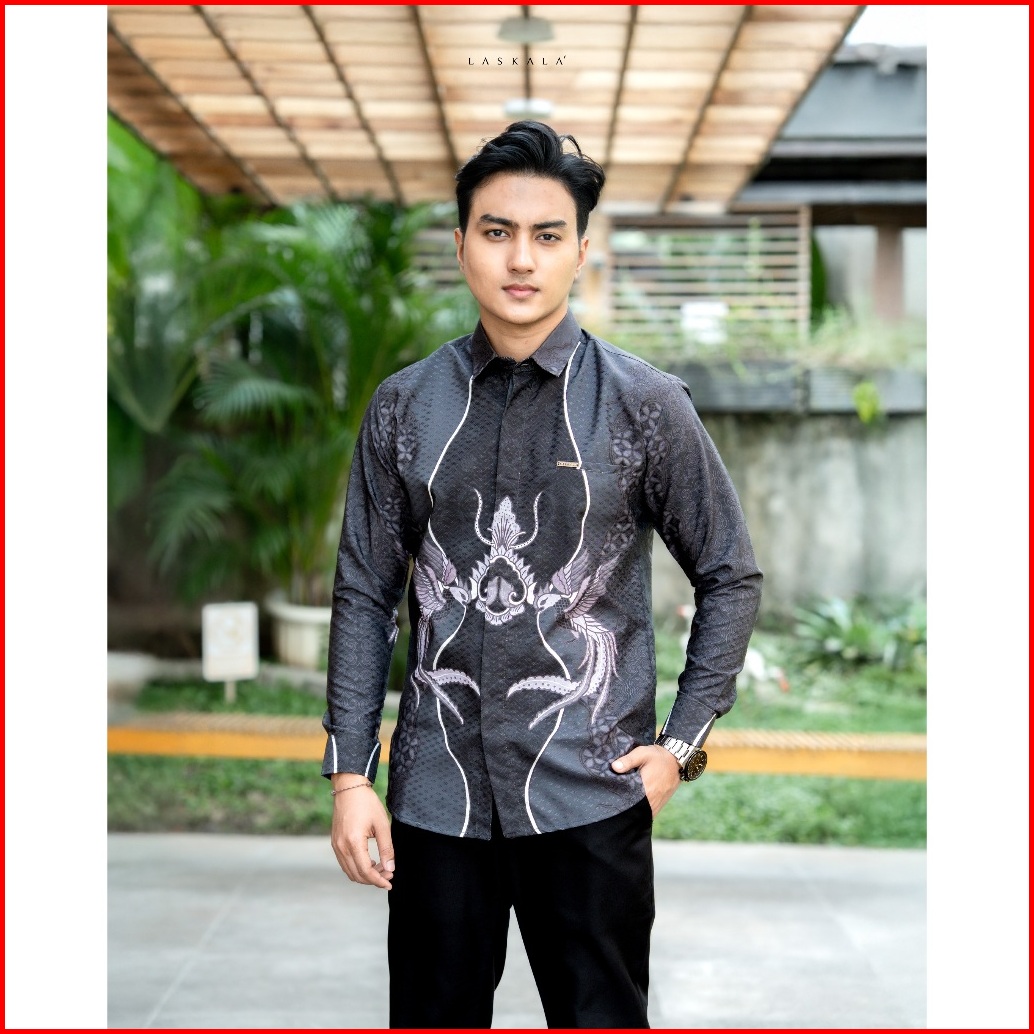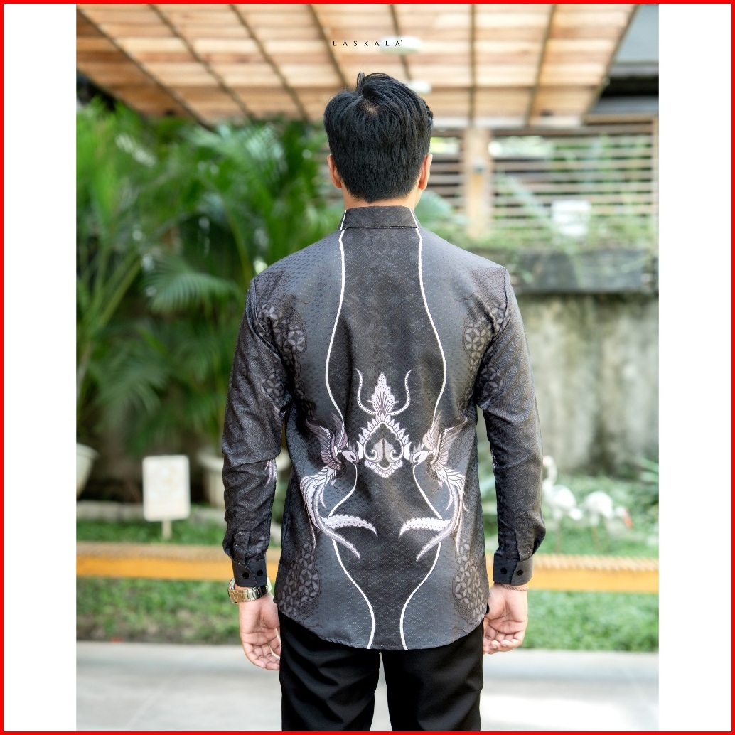 Laskala Batik Premium Magaga Black Kemeja Batik Pria Slimfit Lengan Panjang