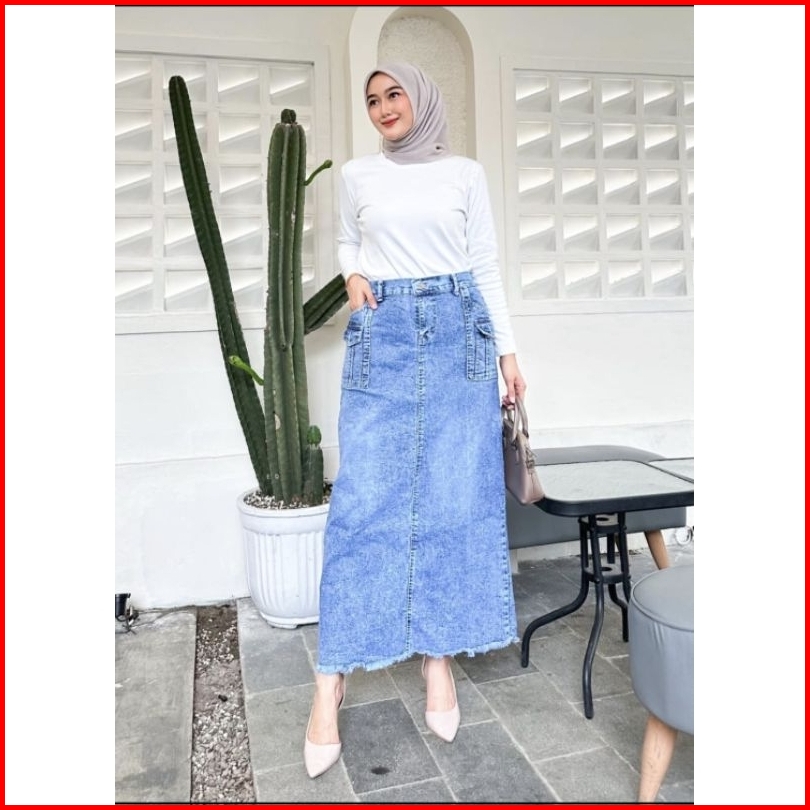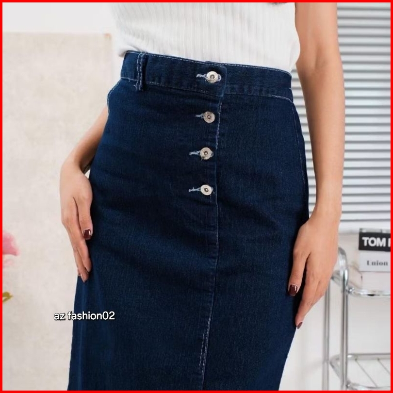 Moren- Highwaist Rok Jeans Korean Style Rok Span Rawis Wanita Denim Rok Panjang
