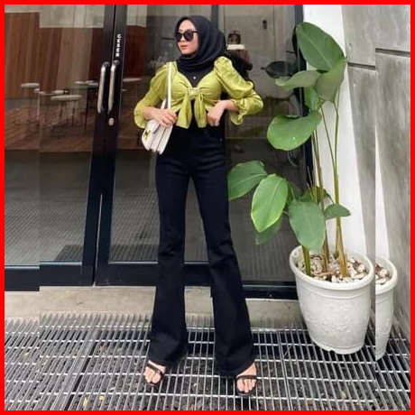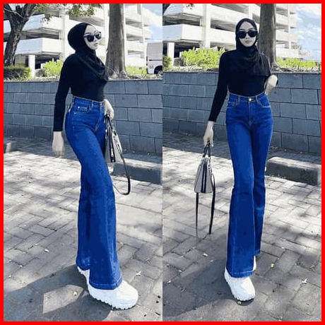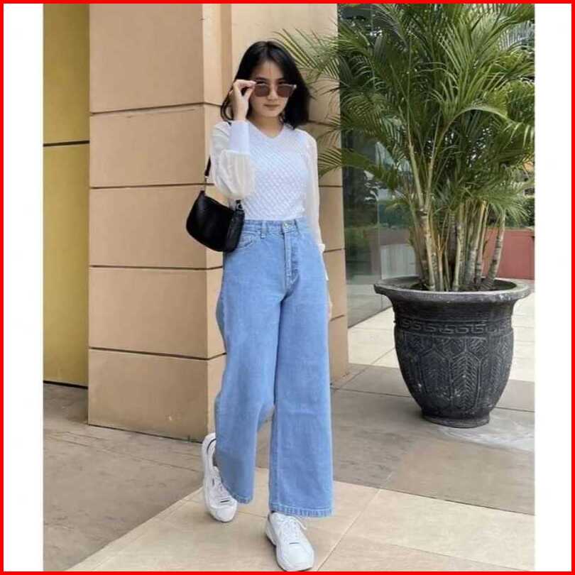 Hightwaist Celana Cutbray Jeans Strecht Wanita