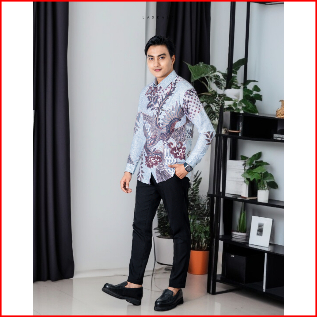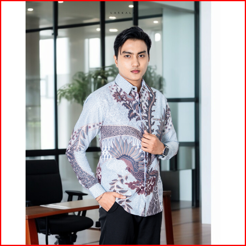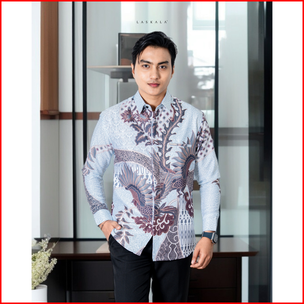Laskala Batik Premium Punna Blue Kemeja Batik Pria Slimfit Lengan Panjang