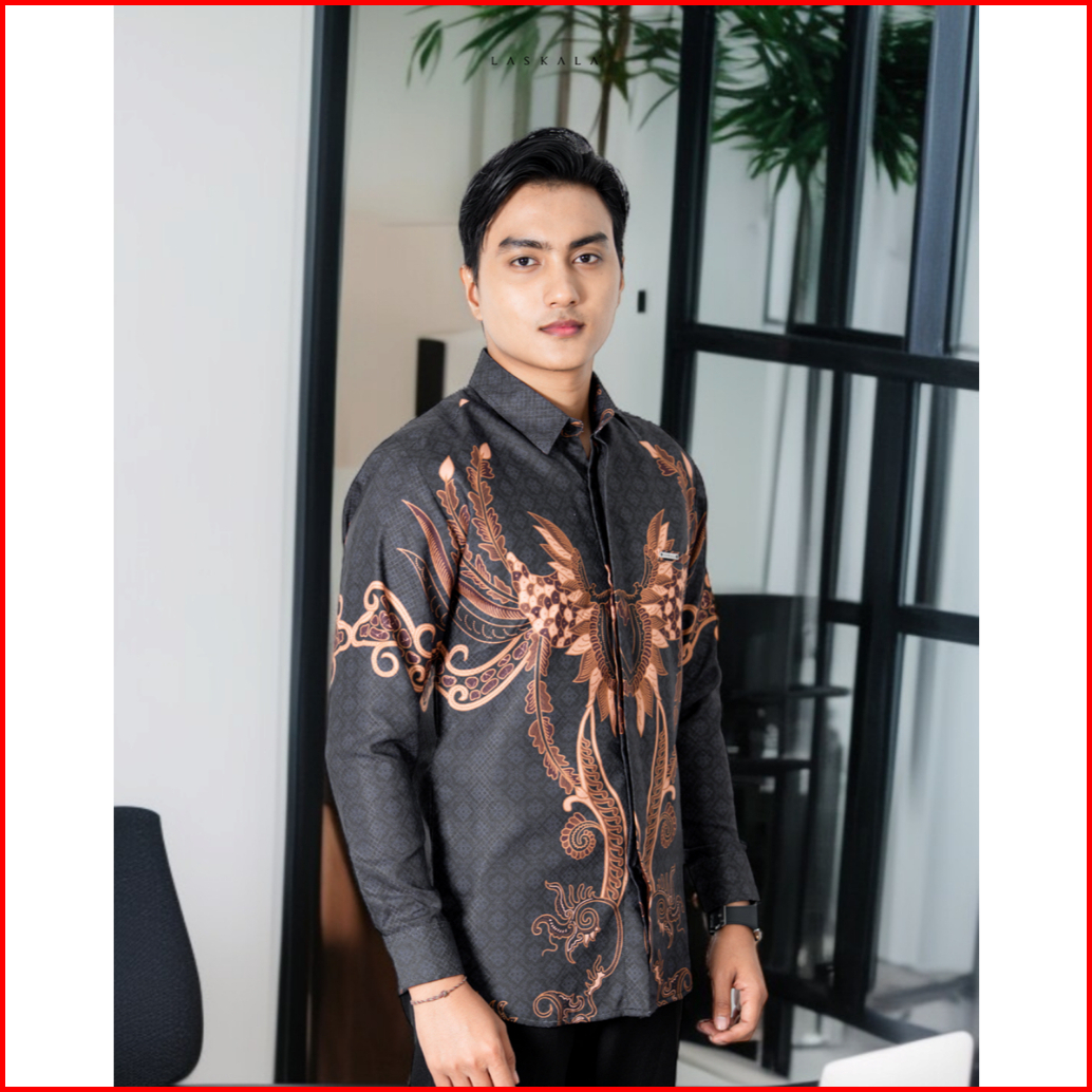 Laskala Batik Premium Bone Black Kemeja Batik Pria Slimfit Lengan Panjang