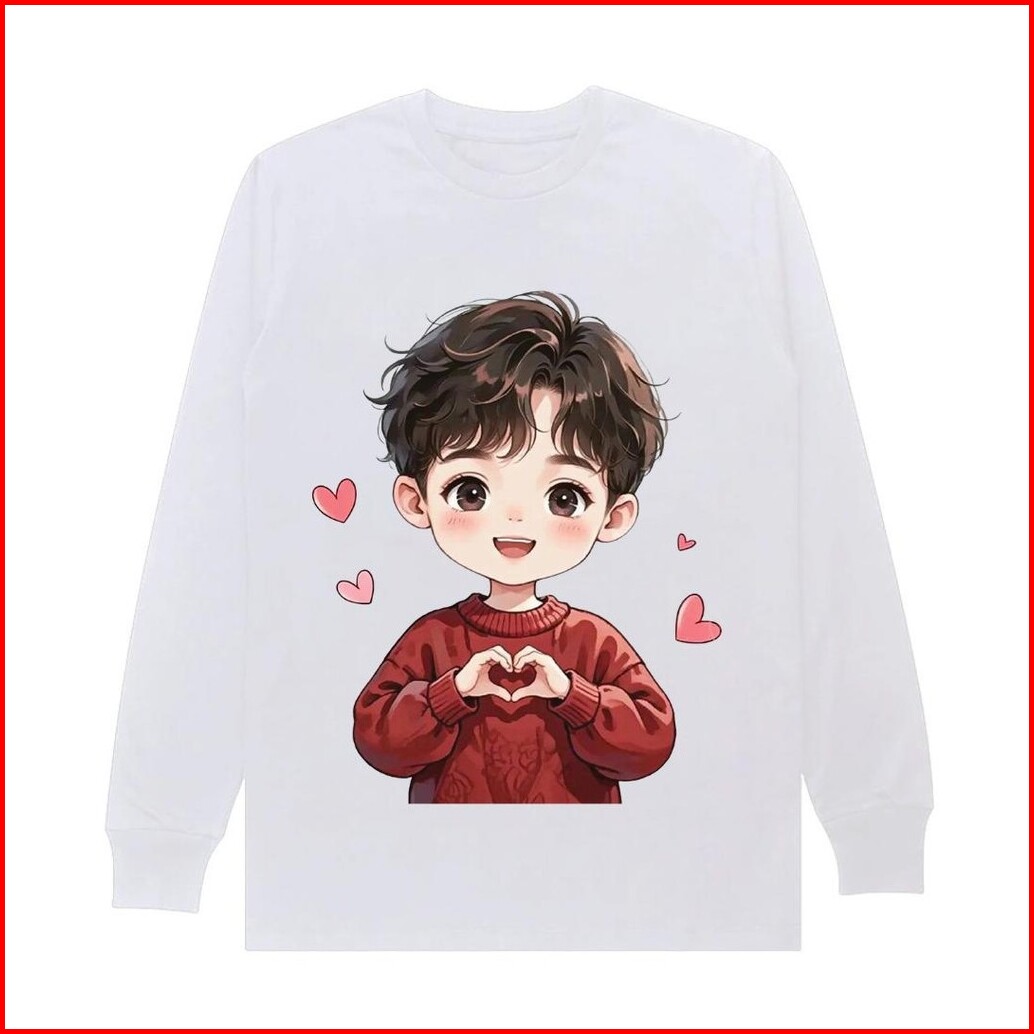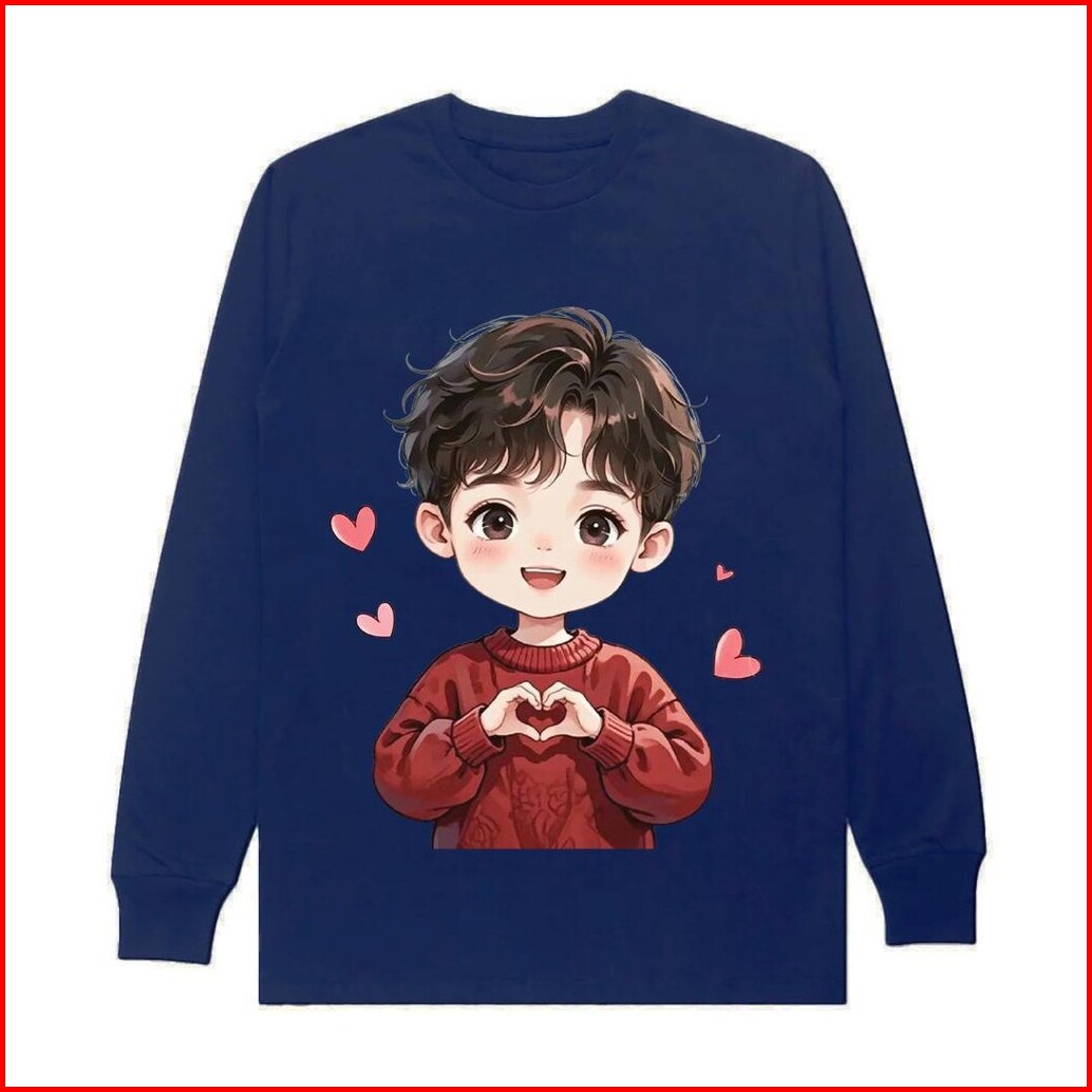 Jessica Tshirt Lengan Panjang Tangan Karet Baju Kaos Oversize Tshirt Motif Cute Boy Couple Korean Style Baju Baha