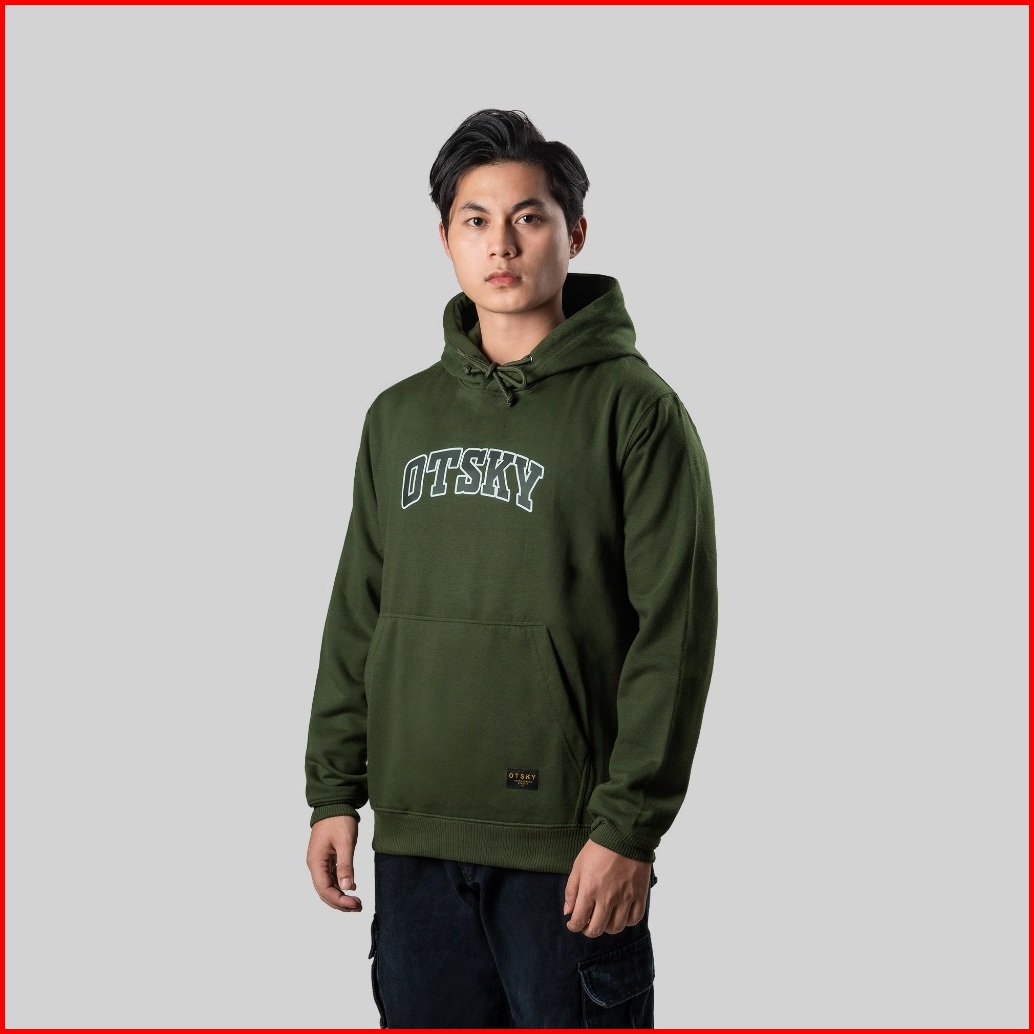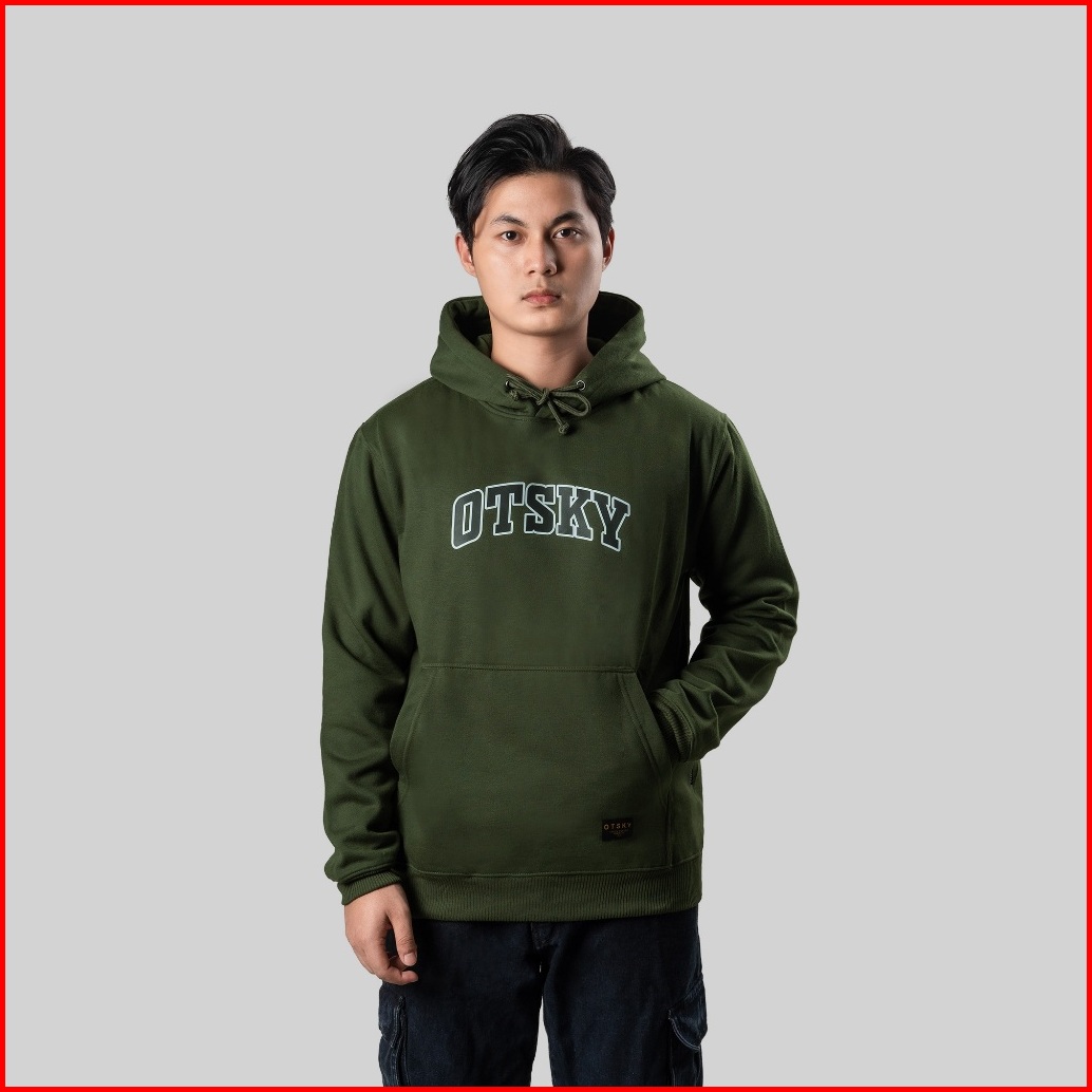 Otsky Jacket Hoodie Pria Font Basic Fleece Army Premium