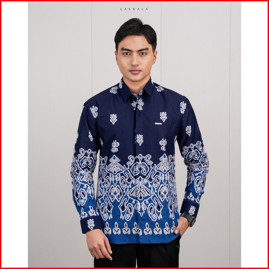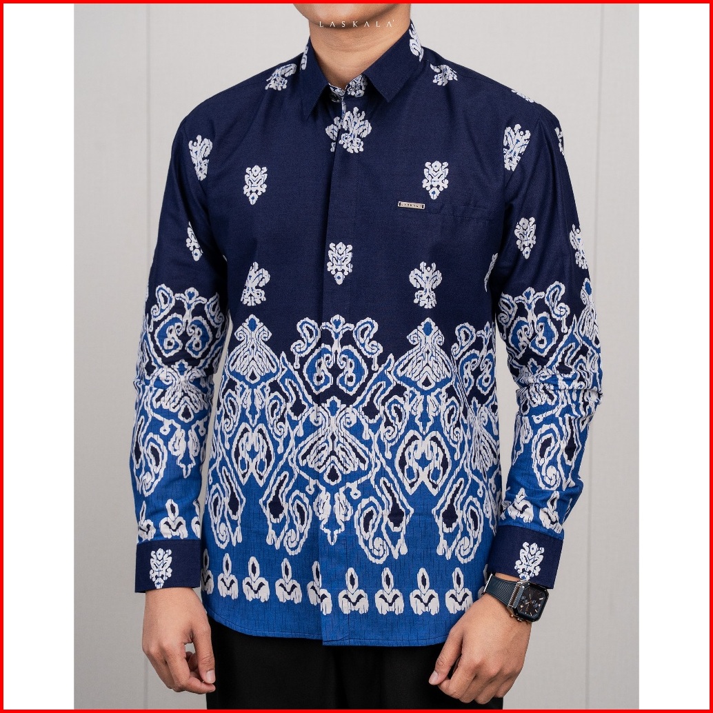 Laskala Batik Premium Waerebo Blue Kemeja Batik Pria Slimfit Lengan Panjang