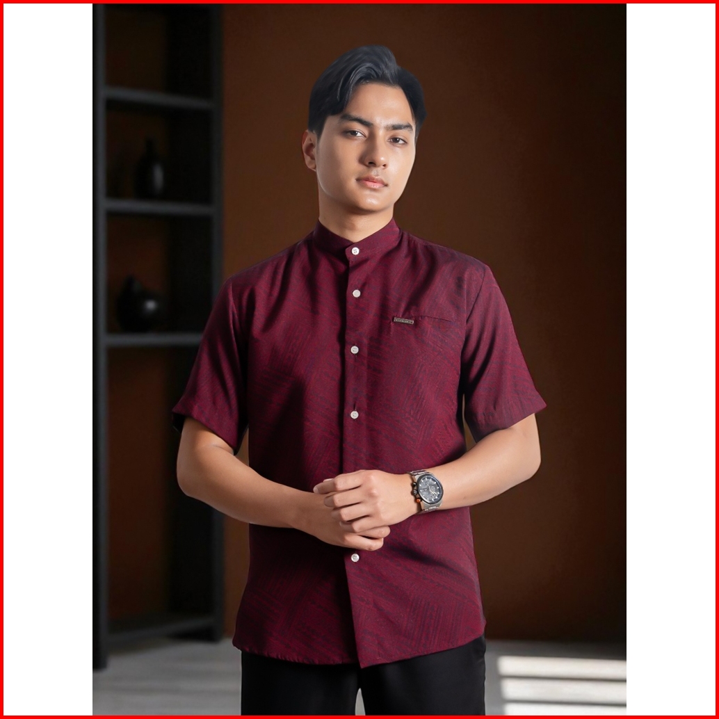 Havar Verde Maroon Kemeja Koko Muslim Premium Slimfit Lengan Pendek
