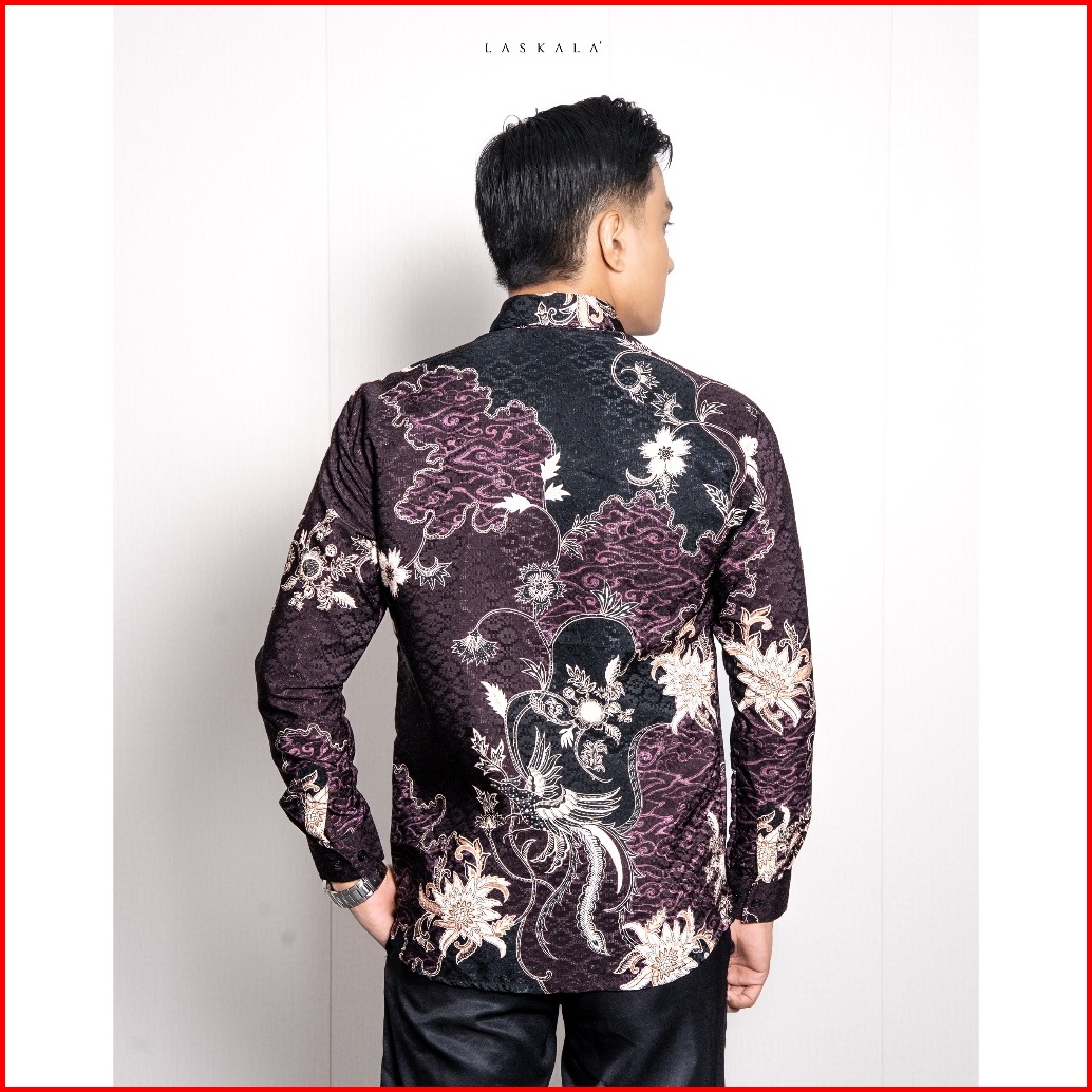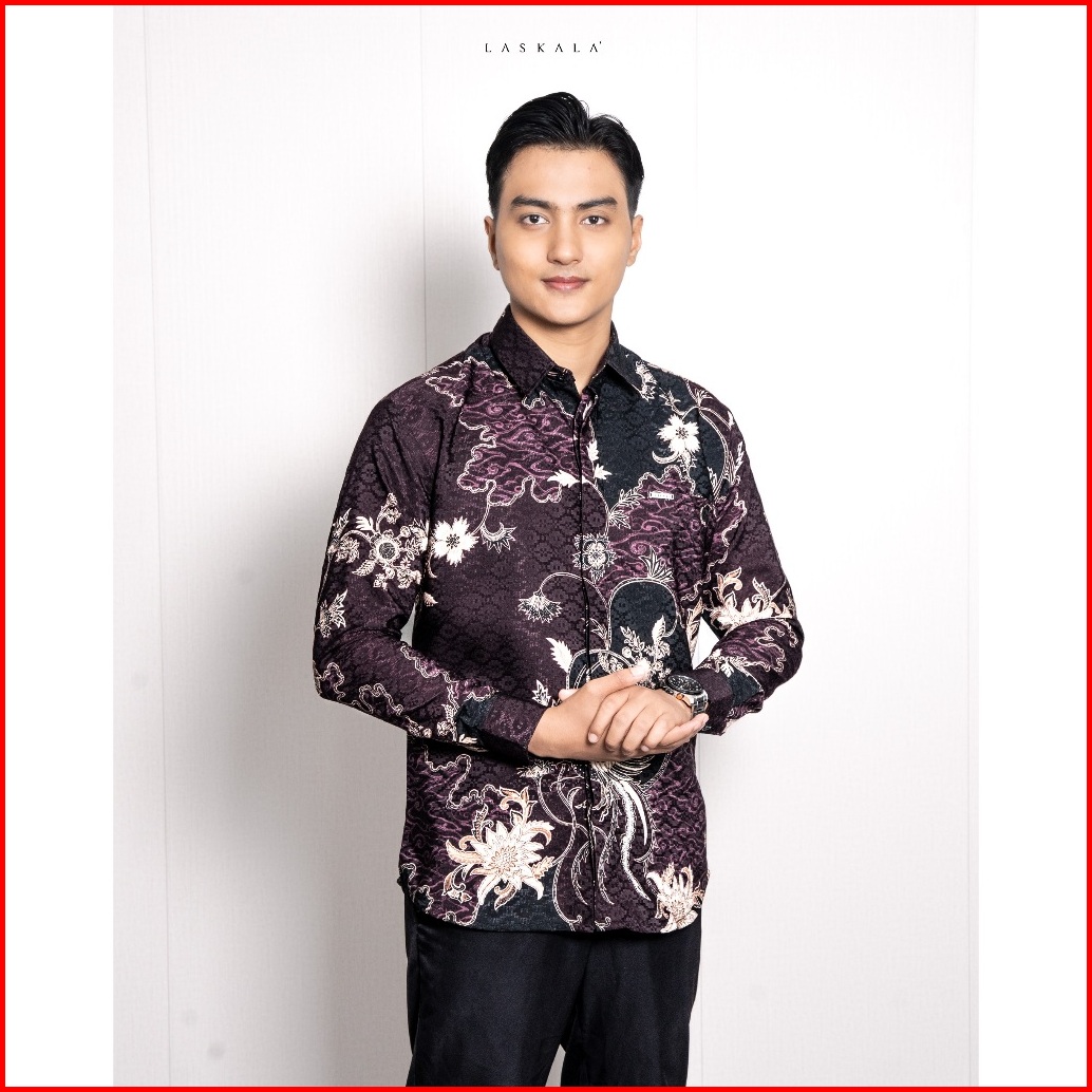 Laskala Batik Premium Dhatu Maroon Kemeja Batik Pria Slimfit Lengan Panjang