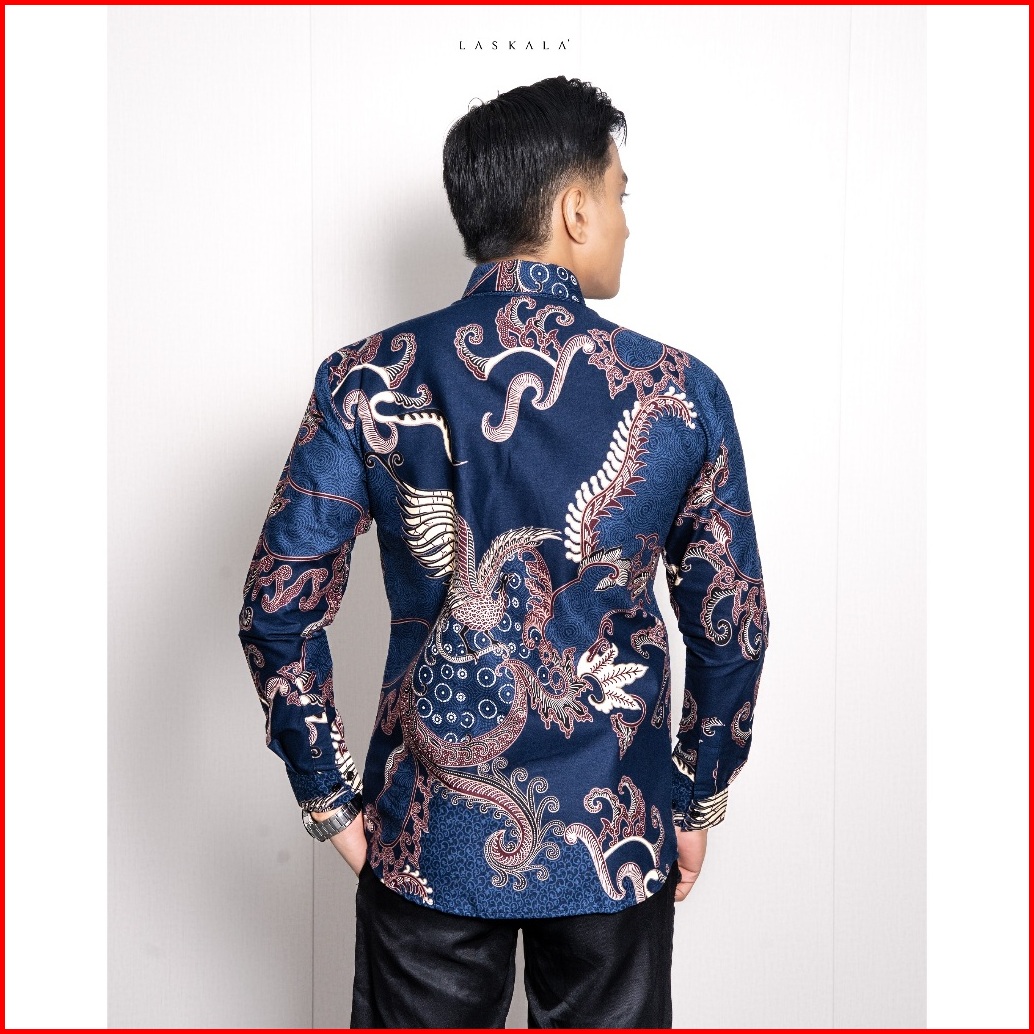 Laskala Batik Premium Dahana Navy Kemeja Batik Pria Slimfit Lengan Panjang