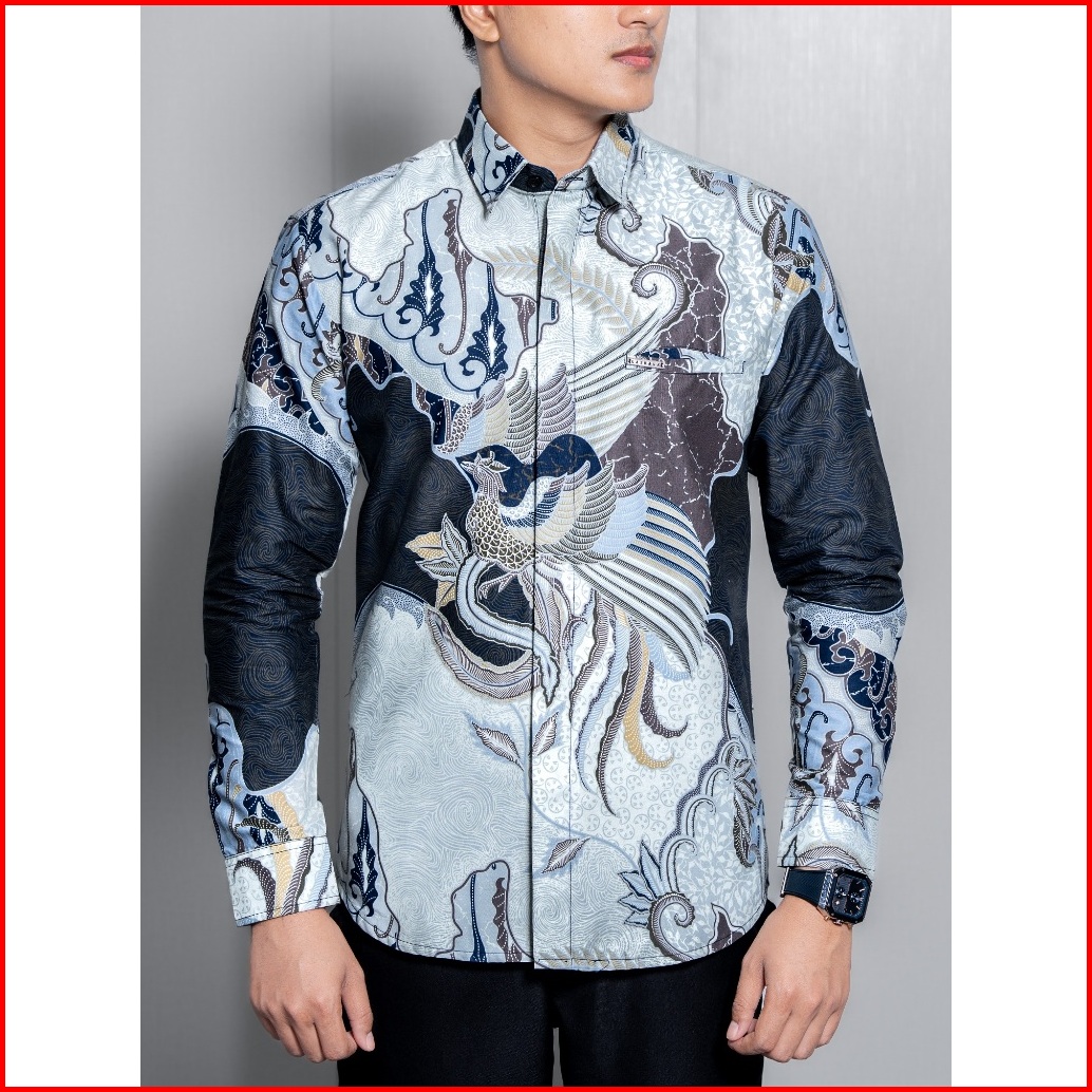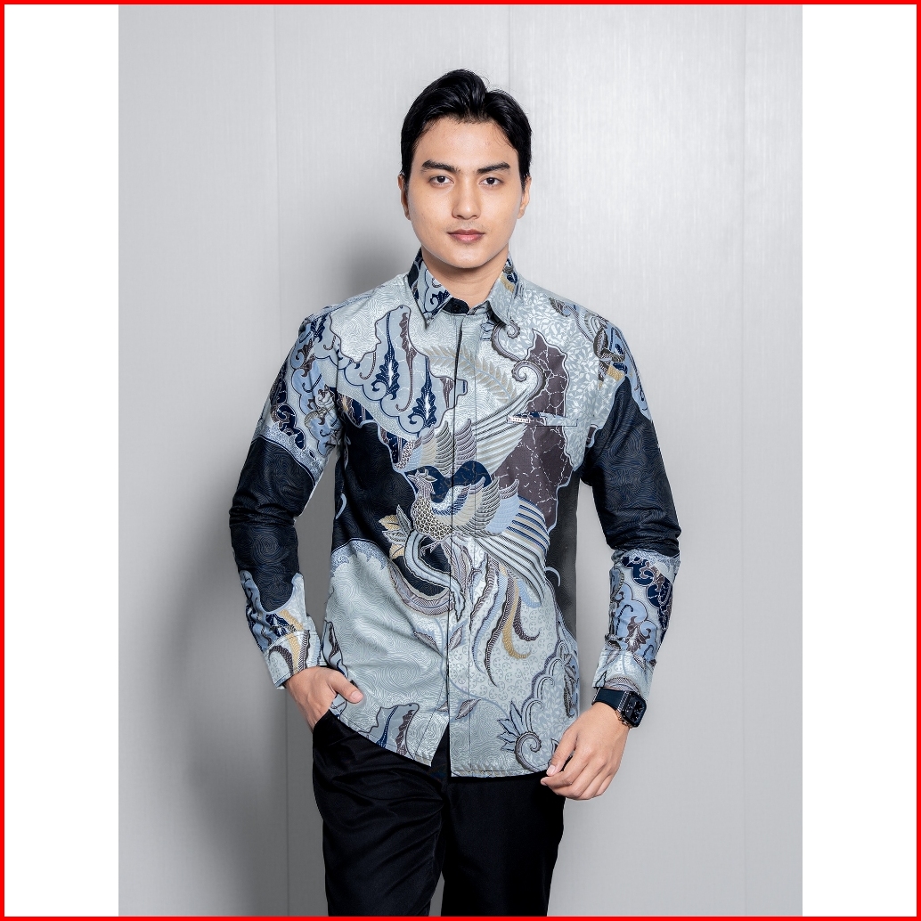 Laskala Batik Premium Pushkar Navy Kemeja Batik Pria Slimfit Lengan Panjang