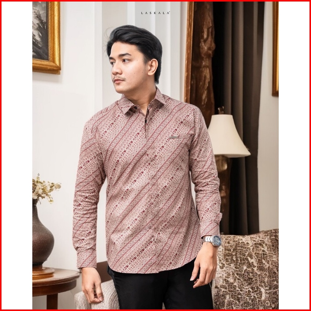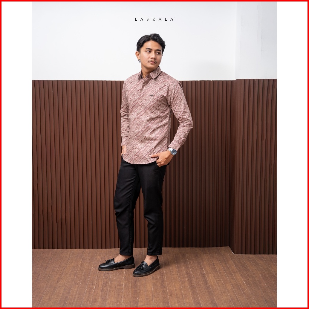 Laskala Batik Premium Seoul Kemeja Batik Pria Slimfit Lengan Panjang