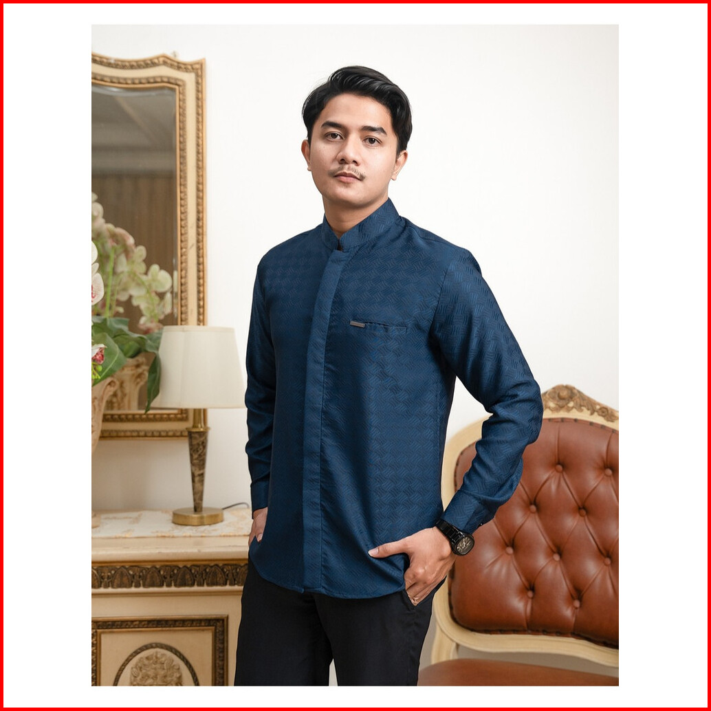 Havar Omar Royal Blue Kemeja Koko Muslim Premium Slimfit Lengan Panjang