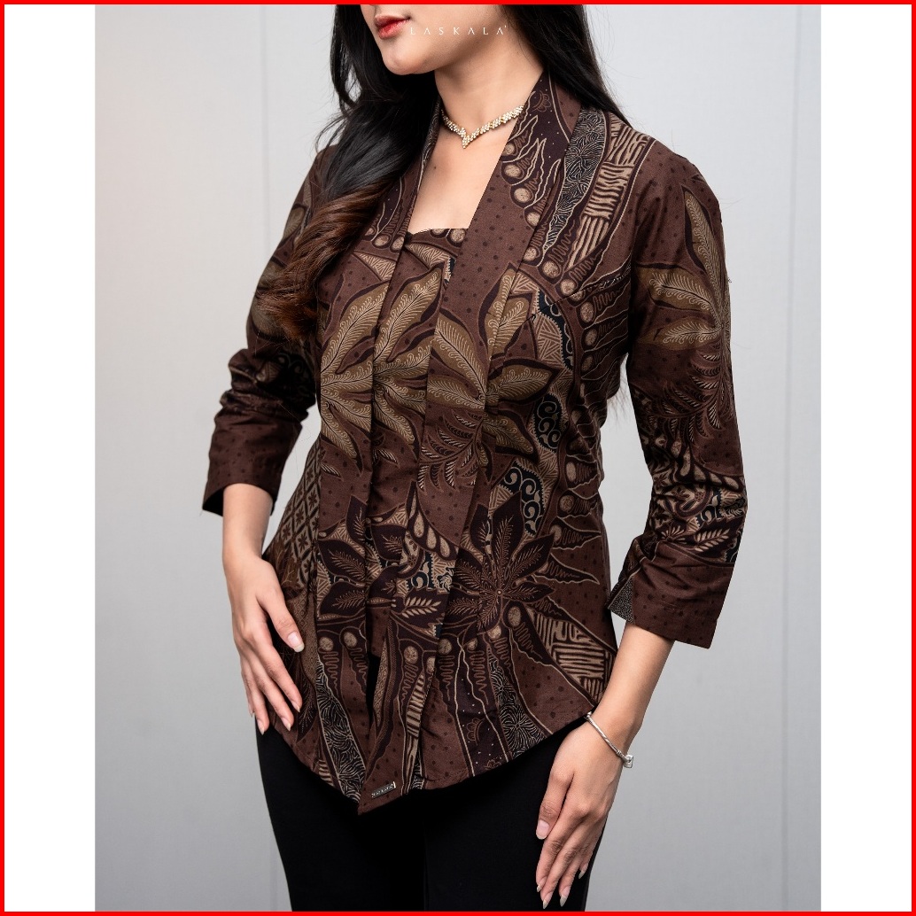 Laskala Batik Woman Premium Janavee Kebaya Kutu Baru Batik Wanita Casual Lengan Panjang