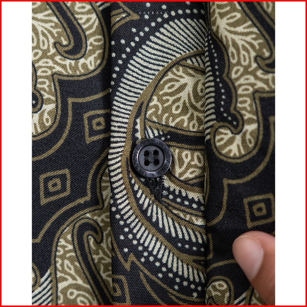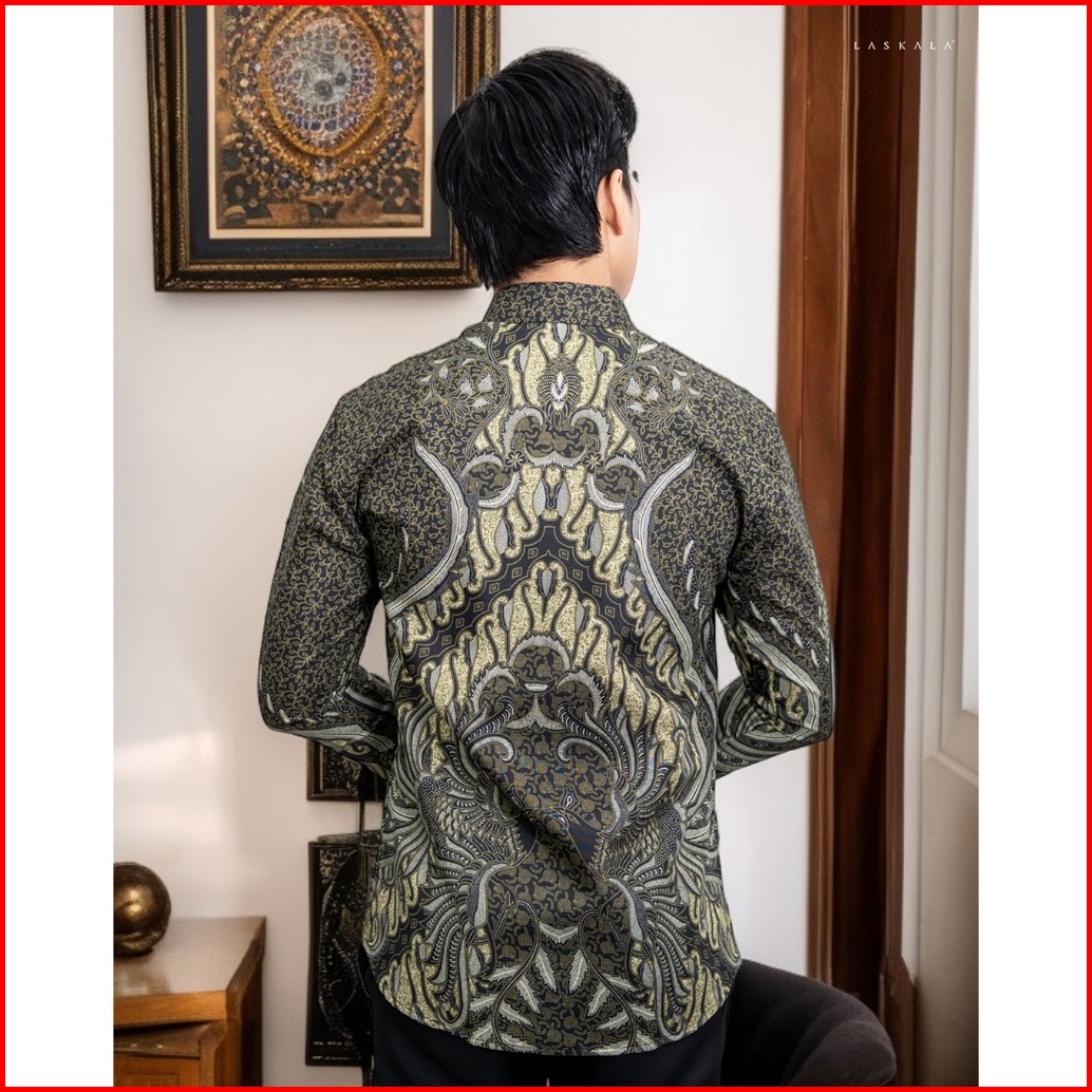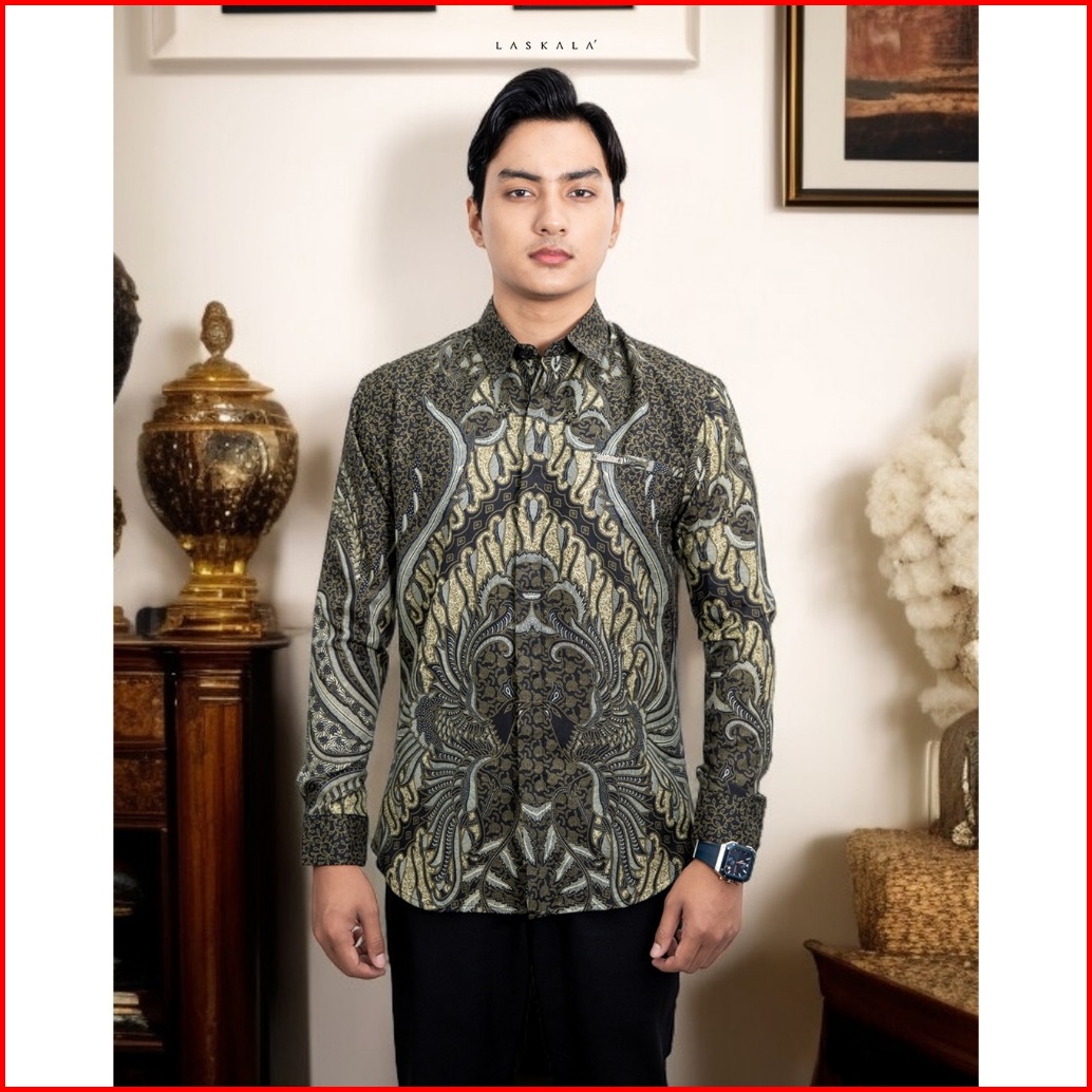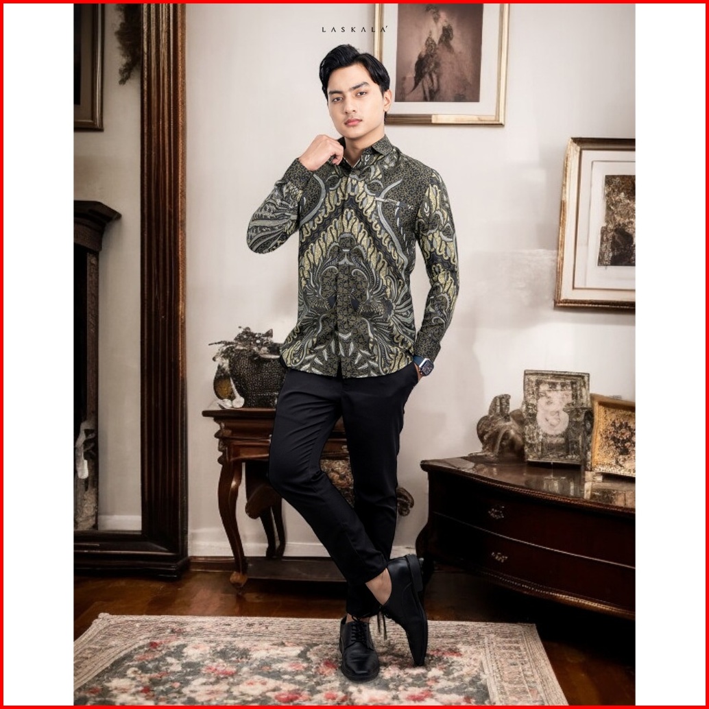 Laskala Batik Premium Kairul Green Kemeja Batik Pria Slimfit Lengan Panjang