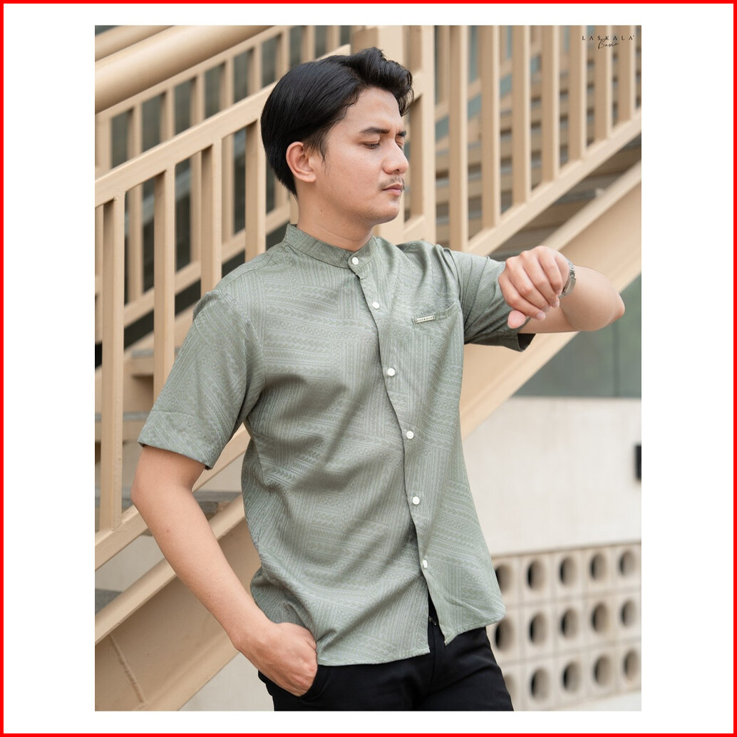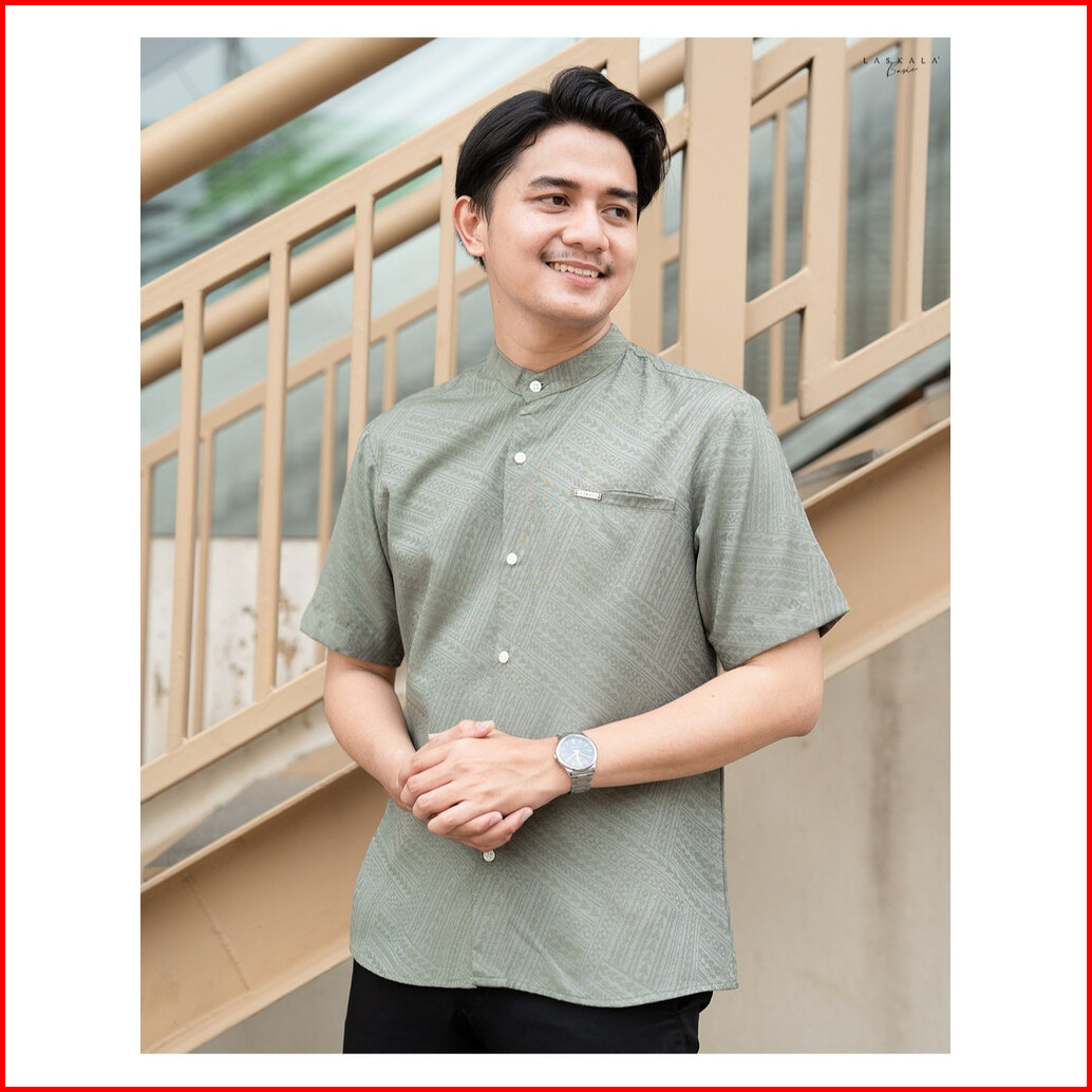 Havar Verde Sage Green Kemeja Koko Muslim Premium Slimfit Lengan Pendek