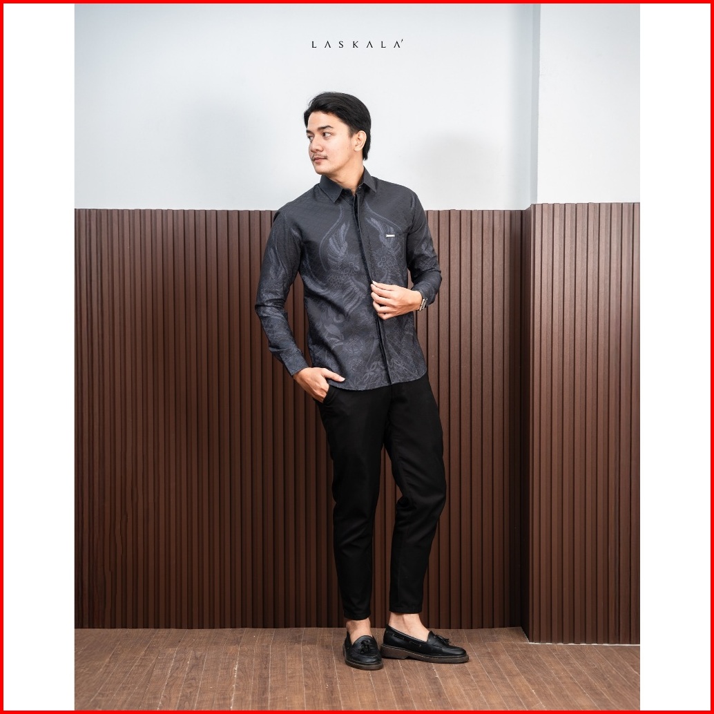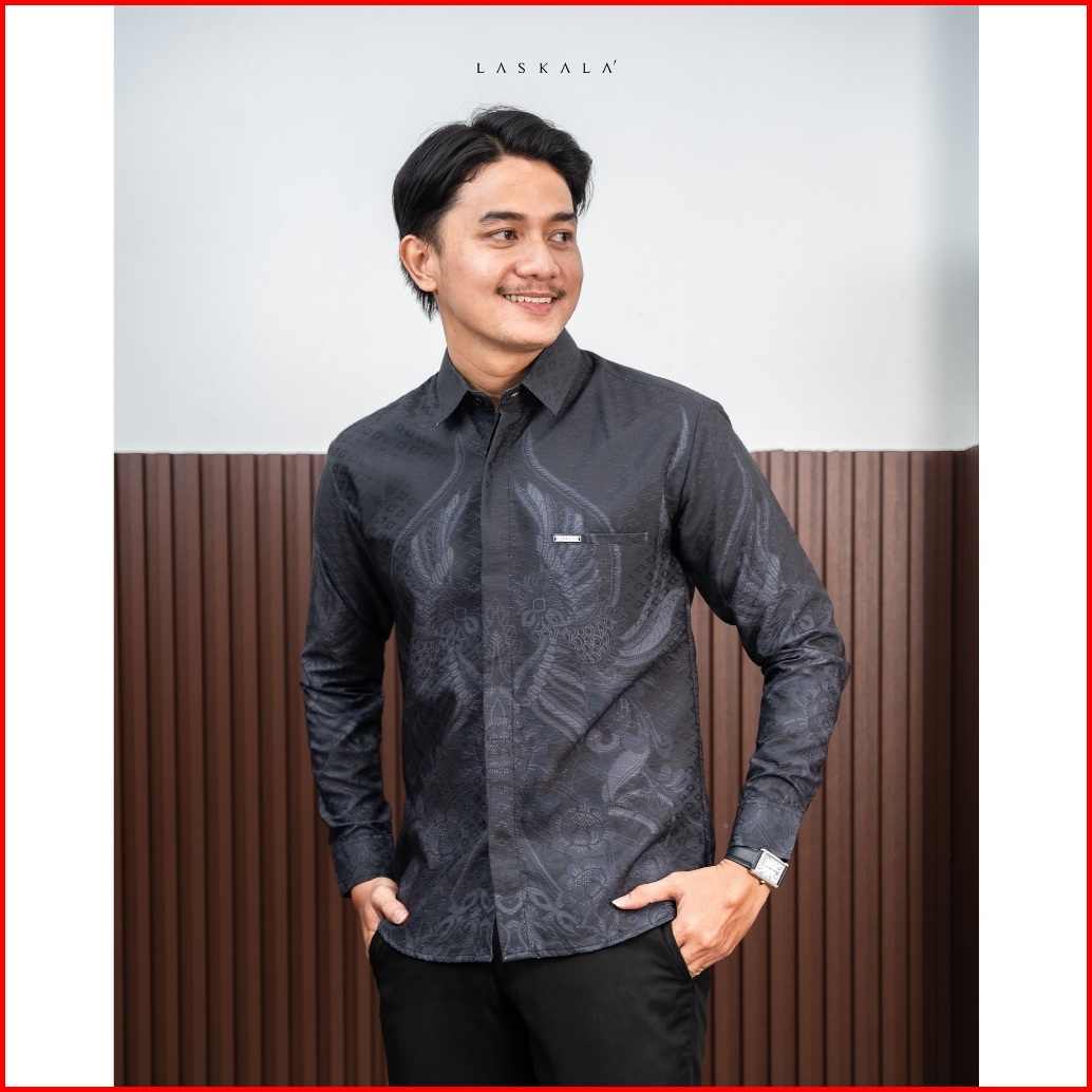 Laskala Batik Premium Prabu Kemeja Batik Pria Slimfit Lengan Panjang