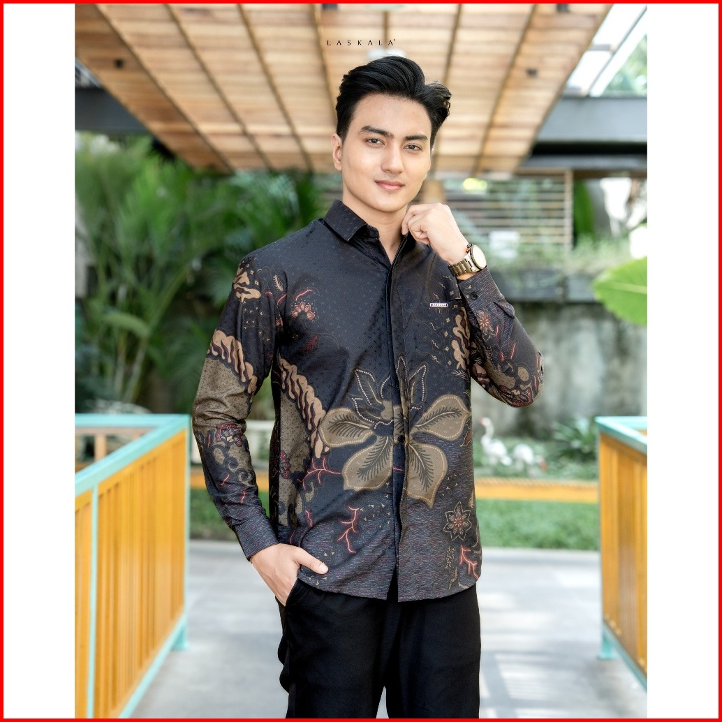 Laskala Batik Premium Daeng Black Kemeja Batik Pria Slimfit Lengan Panjang