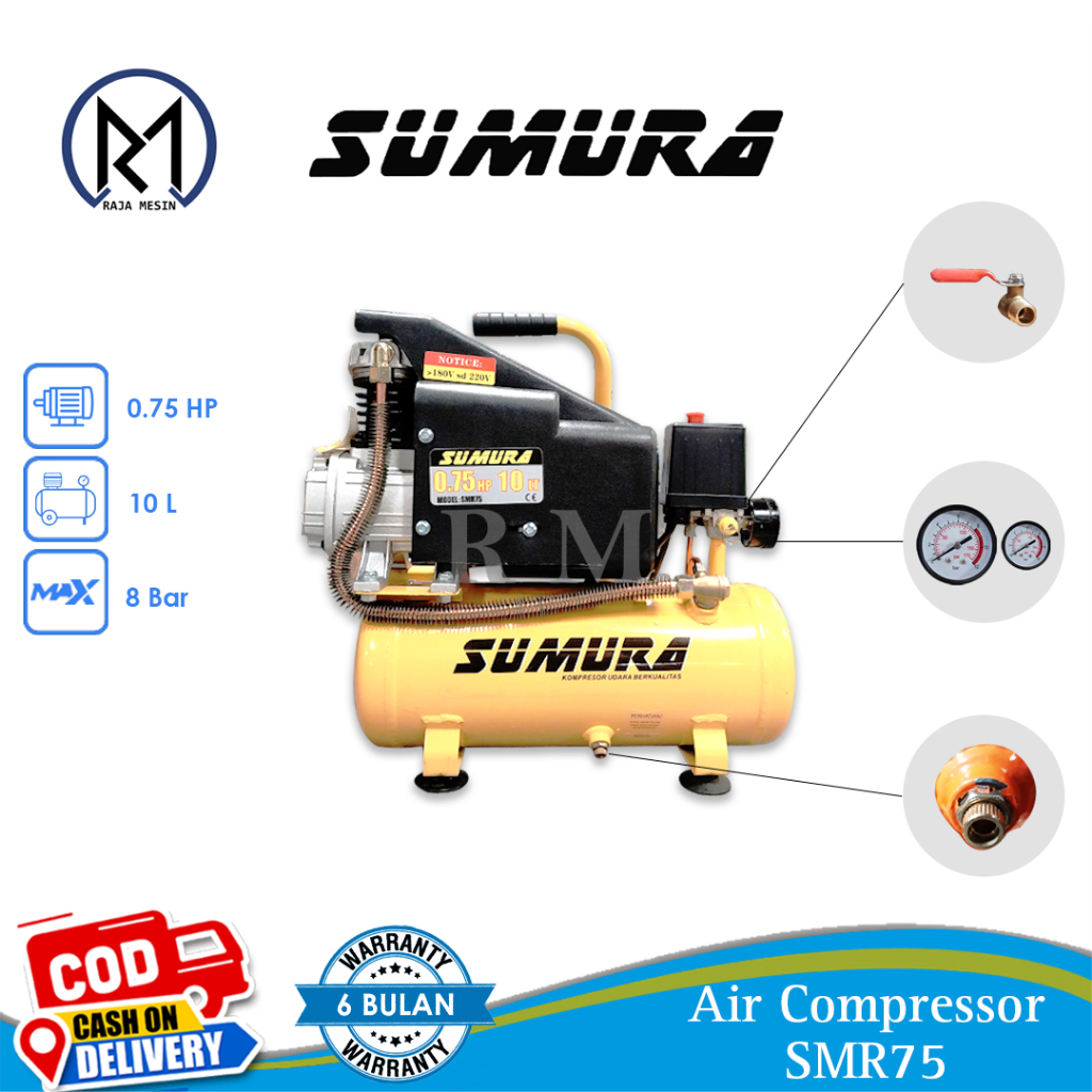 Kompresor Angin Listrik / Air Compressor Matrix MTX75 (0.75HP, 10 Liter) / Air Compressor Sumura SMR75 (0.75HP, 10 Liter