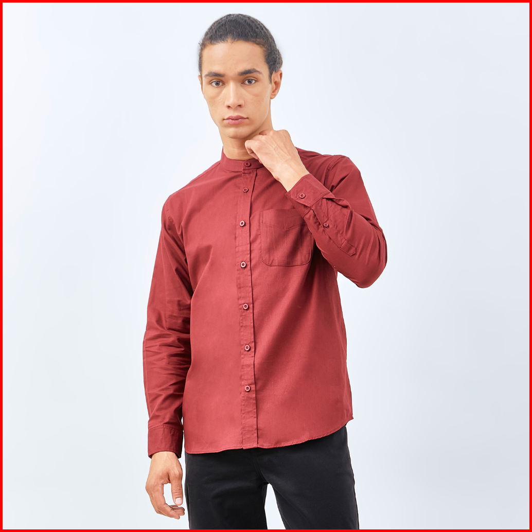 M231 Kemeja Pria Koko Shanghai Polos Panjang Maroon 0185i