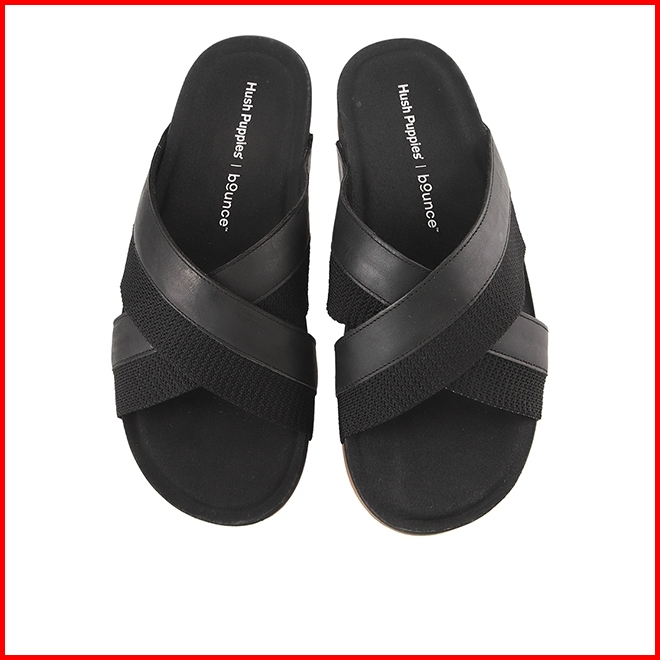 Hush Puppies Sandal Pria Merritt Cross Slide Bold Black Leather