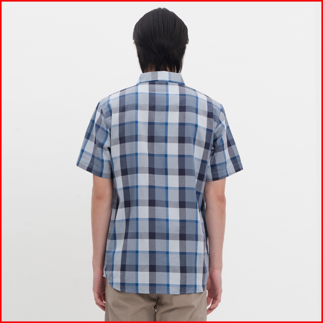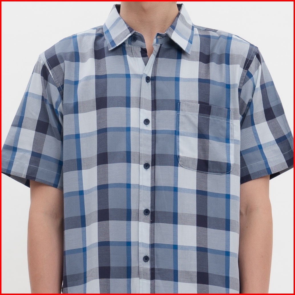M231 Kemeja Pria Yarn Dyed Kotak Pendek Biru 0460