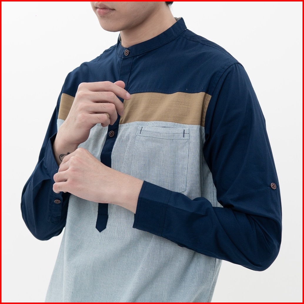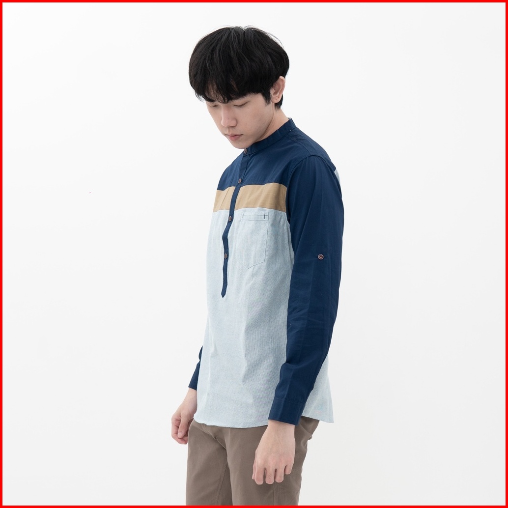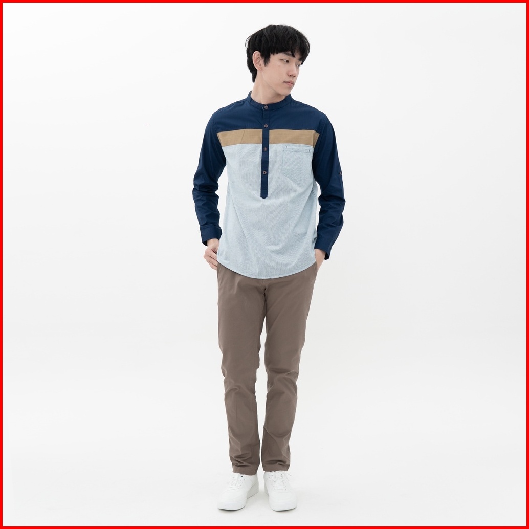 M231 Kemeja Pria Shanghai Stripe Panjang Biru 1553c