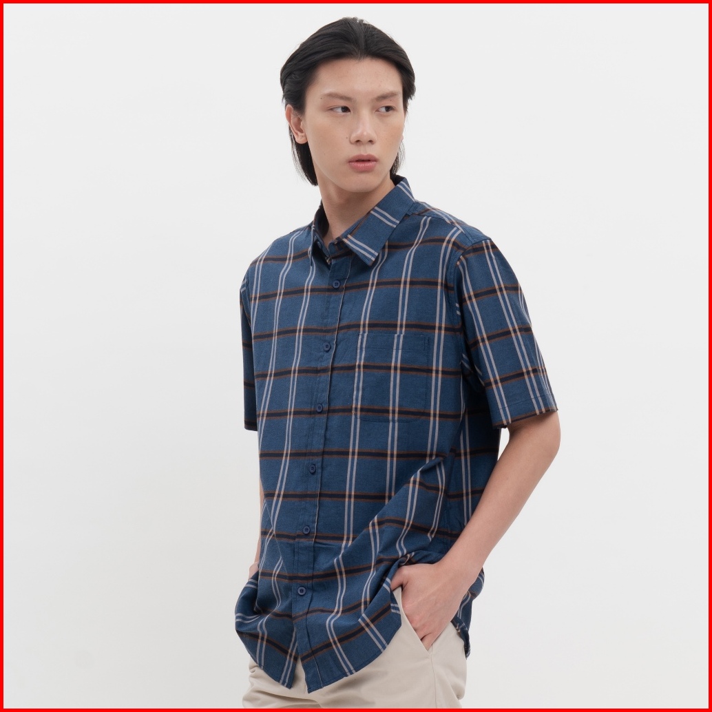 M231 Kemeja Pria Yarn Dyed Kotak Pendek Navy 0148