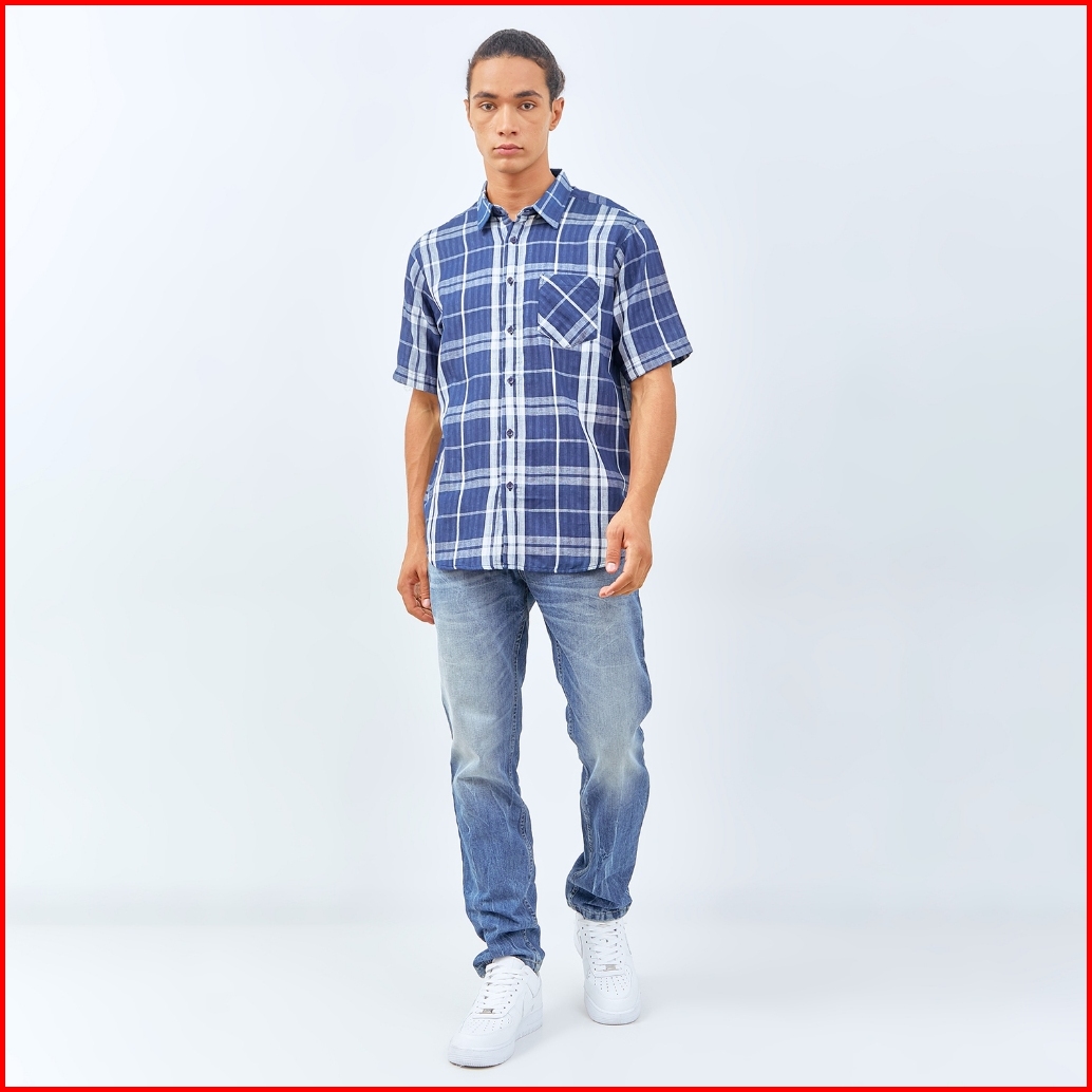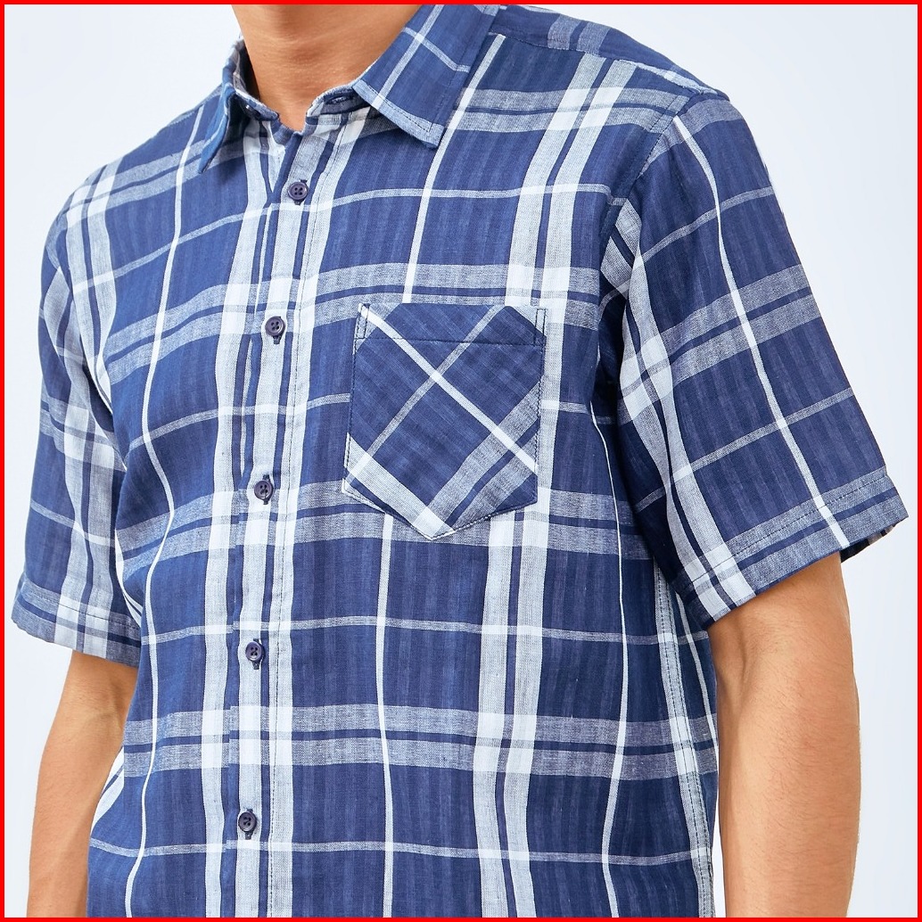 M231 Kemeja Pria Yarn Dyed Double Face Kotak Pendek Navy 3068