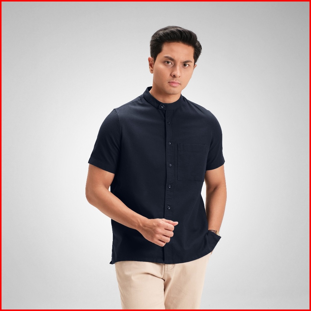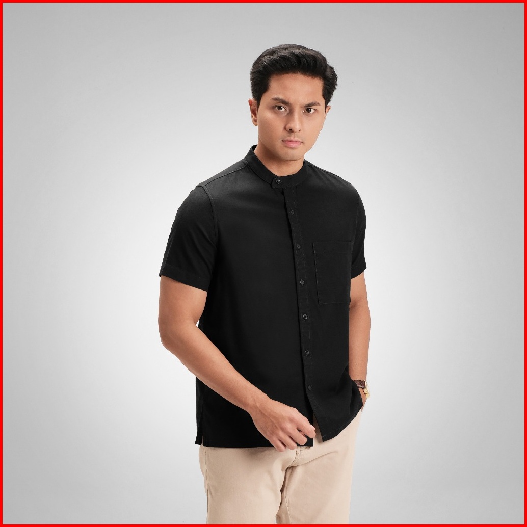 Cutoff Razqi Rami Collarless Shirt Kemeja Koko Pria Lengan Pendek