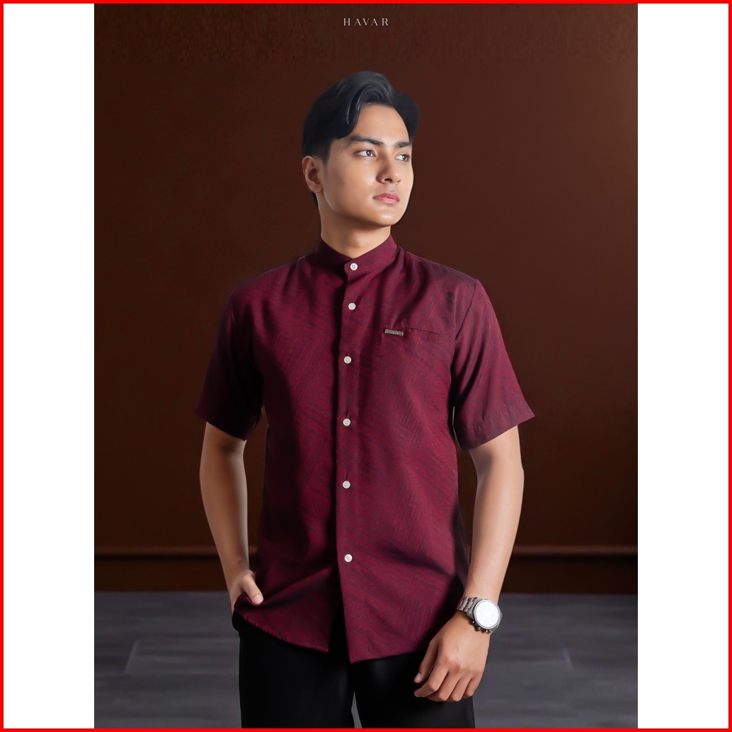 Havar Verde Maroon Kemeja Koko Muslim Premium Slimfit Lengan Pendek