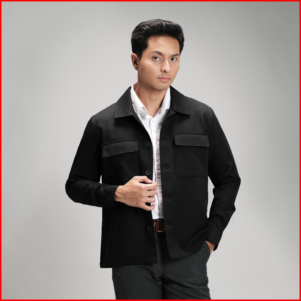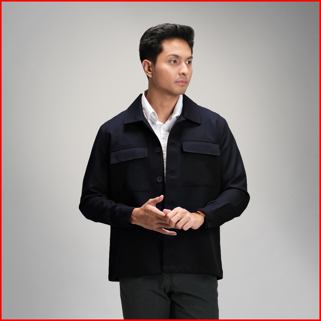 Cutoff Enzo Overshirt Polyester Outer Pria Premium Twill Lengan Panjang