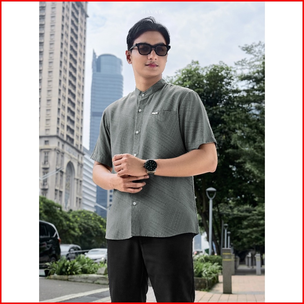Havar Verde Sage Green Kemeja Koko Muslim Premium Slimfit Lengan Pendek
