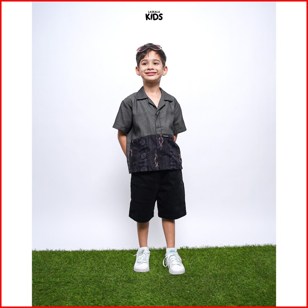 Hailuk Kids Gavin Dark Grey Kemeja Anak Laki-laki Premium Reguler Fit Lengan Pendek