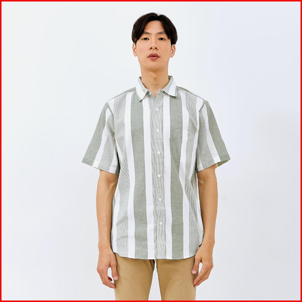 M231 Kemeja Pria Stripe Pendek Hijau 0064b