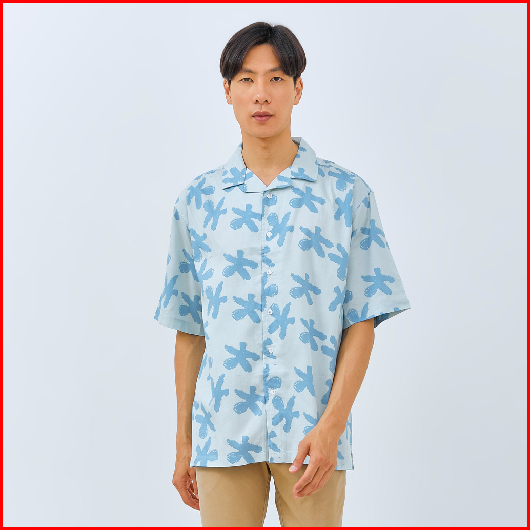 M231 Kemeja Pria Printing Hawaii Festive Bleu Pendek Biru 2860
