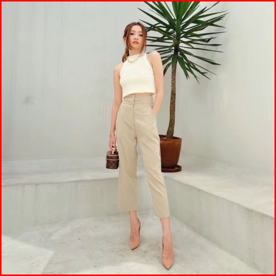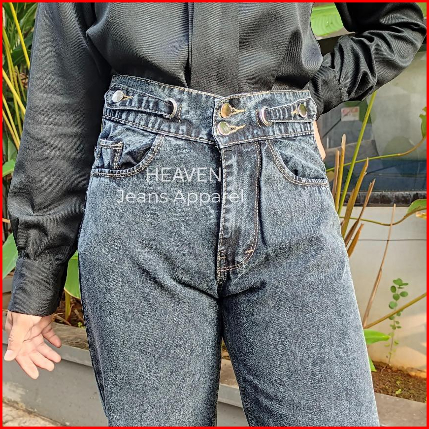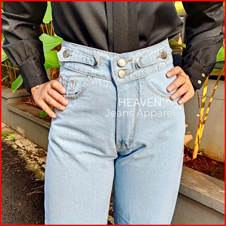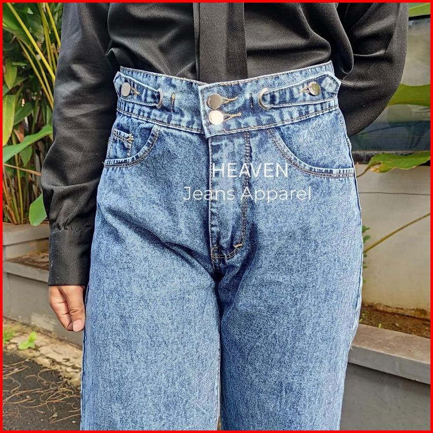 Celana Kulot Highwaist Jeans Loose Korean Panjang Wanita Hangover Ring Belt 4 Button