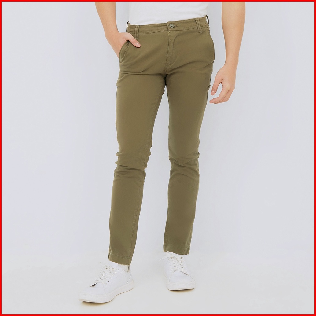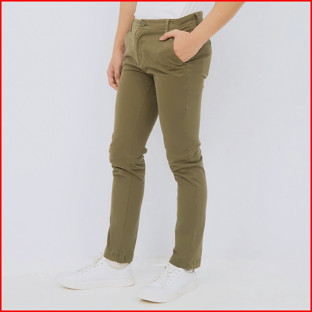 M231 Celana Panjang Pria Chino Pants Slim Fit Stretch Olive C1142