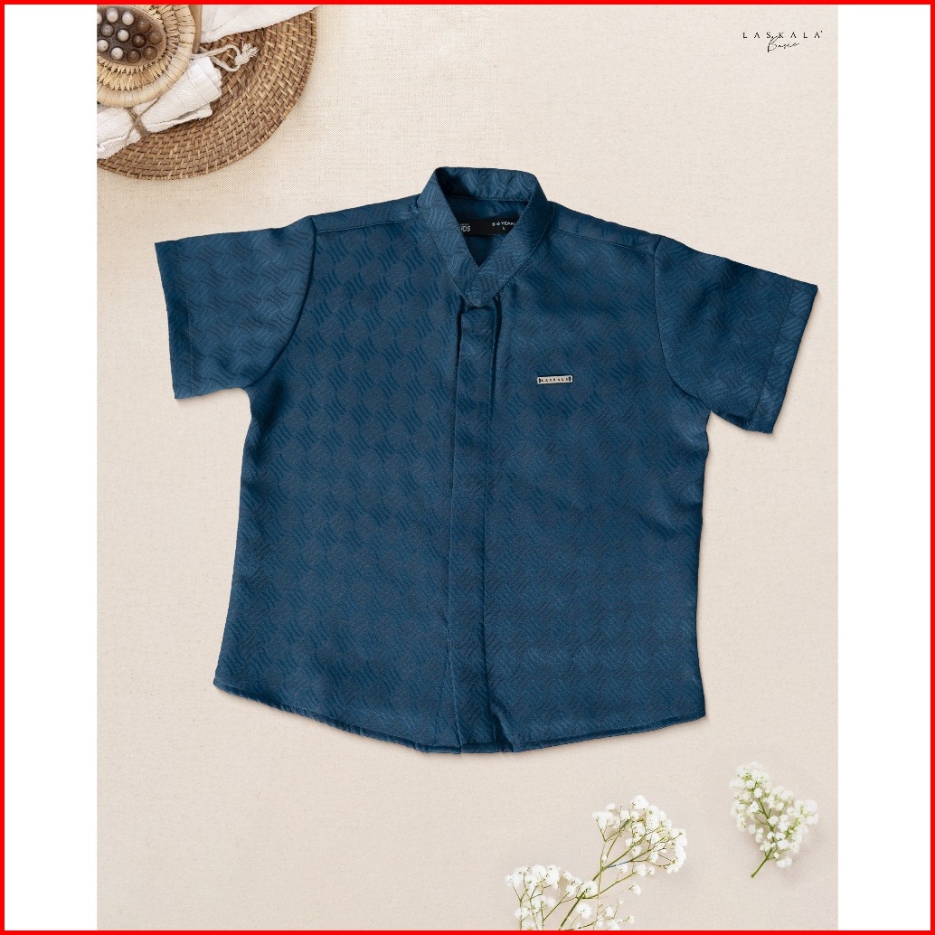 Havar Kids Omar Royal Blue Kemeja Koko Muslim Premium Lengan Pendek