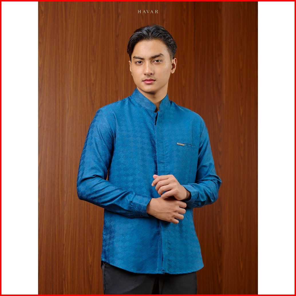 Havar Omar Royal Blue Kemeja Koko Muslim Premium Slimfit Lengan Panjang