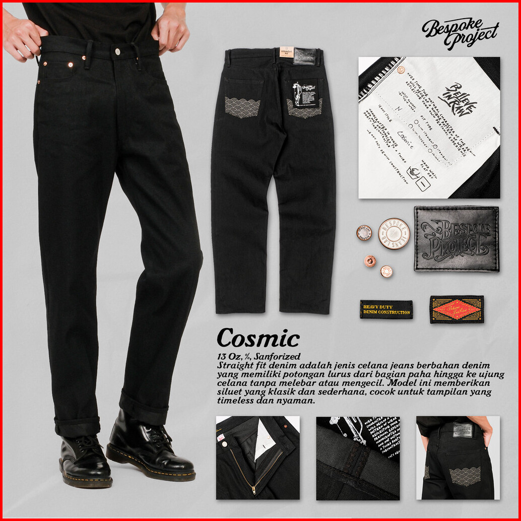 Bespoke Project - Celana Jeans Pria Hitam Cosmic Black Raw Denim Pants