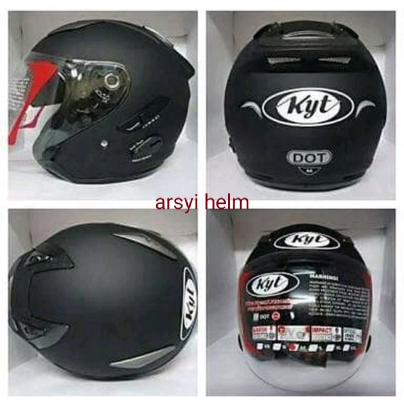 KYT GALAXY FLAT R BLACK MATTE SOLID ORIGINAL DOUBLE VISOR HELM HALF FACE KYT GALAXY FLAT R HITAM DOFF ORI SNI DOT