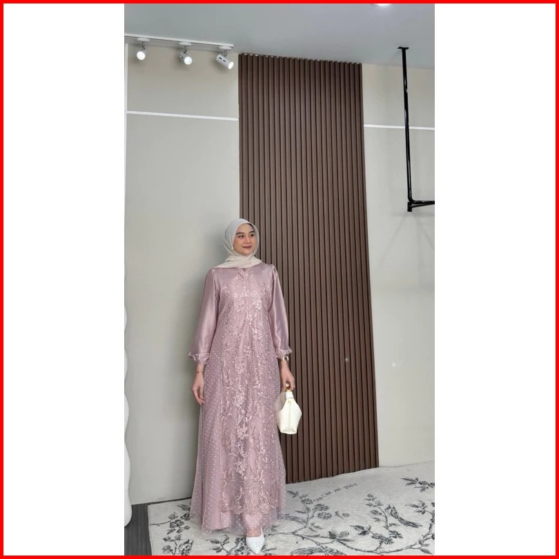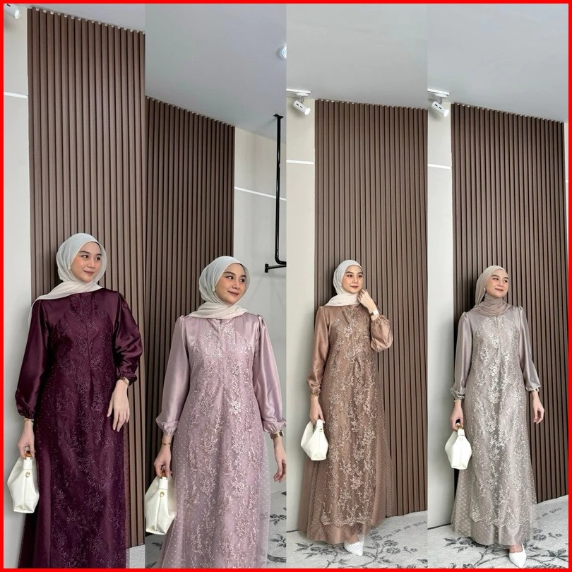 Nala Dress Gamis Brukat Terbaru Gaun Kondangan Muslimah Maxi Dress Wanita Muslim