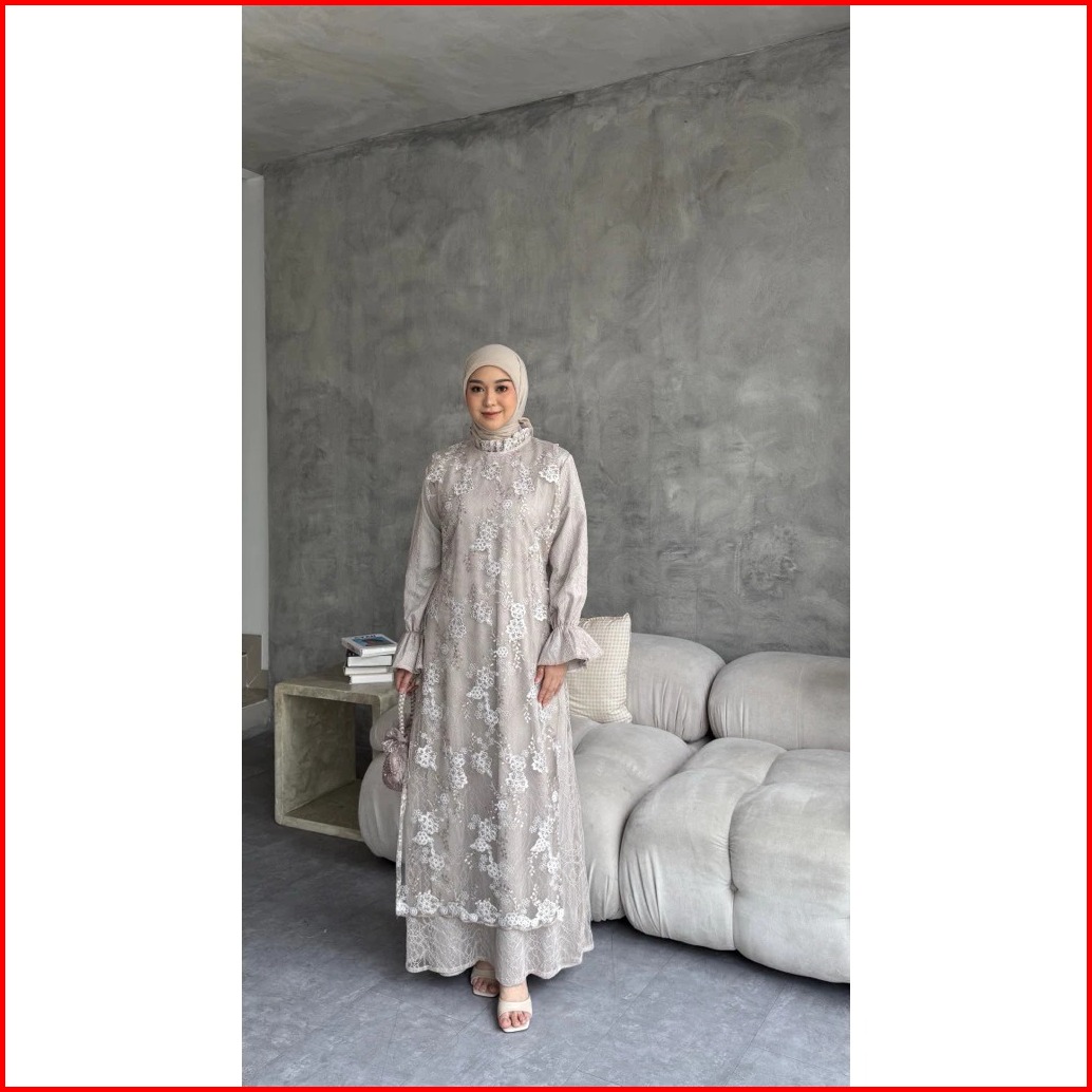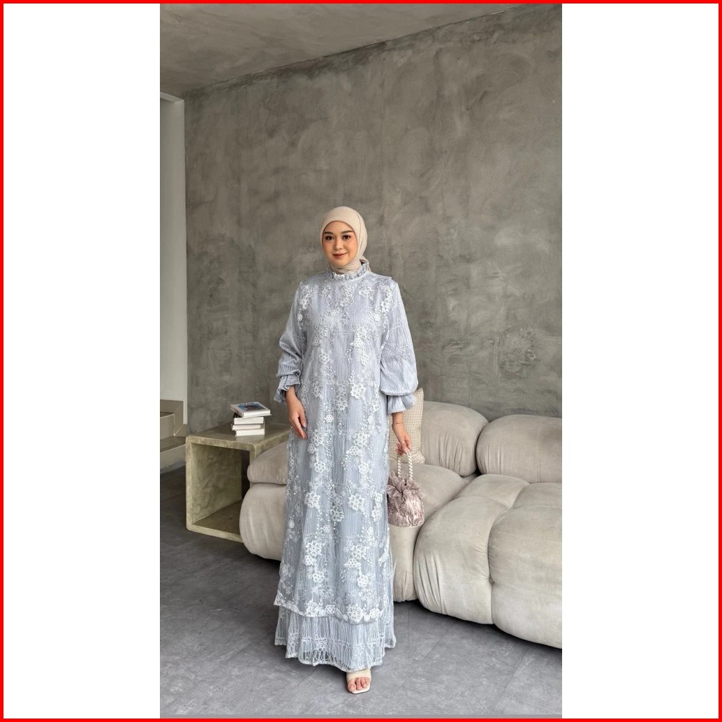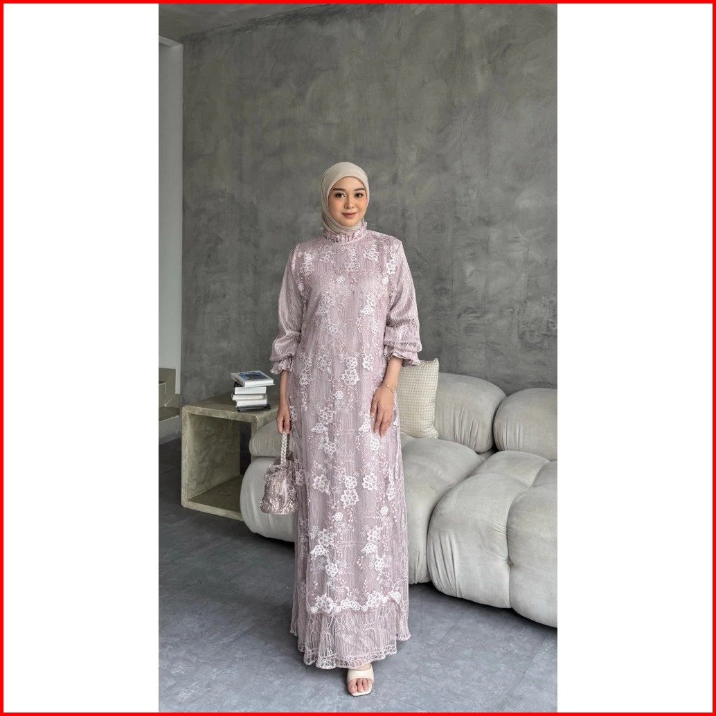 Melisa Dress Brukat Chantily Mix Silk Baju Gamis Kondangan Wanita Kekinian Gaun Maxi Terbarumuslimah