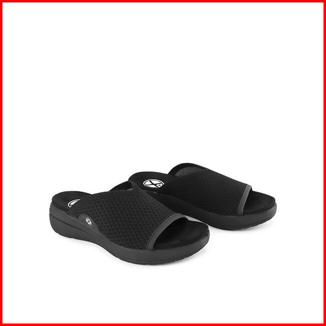Hush Puppies Sandal Wanita Breathe Knit Slide Bold Black Knit