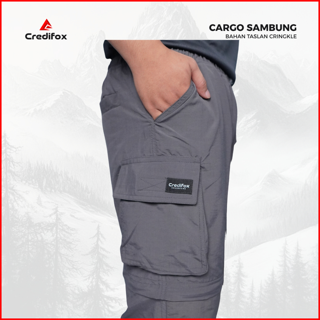Credifox Celana Cargo Sambung Panjang Pria Bahan Taslan Cringkle - Celana Hiking - Celana Outdoor