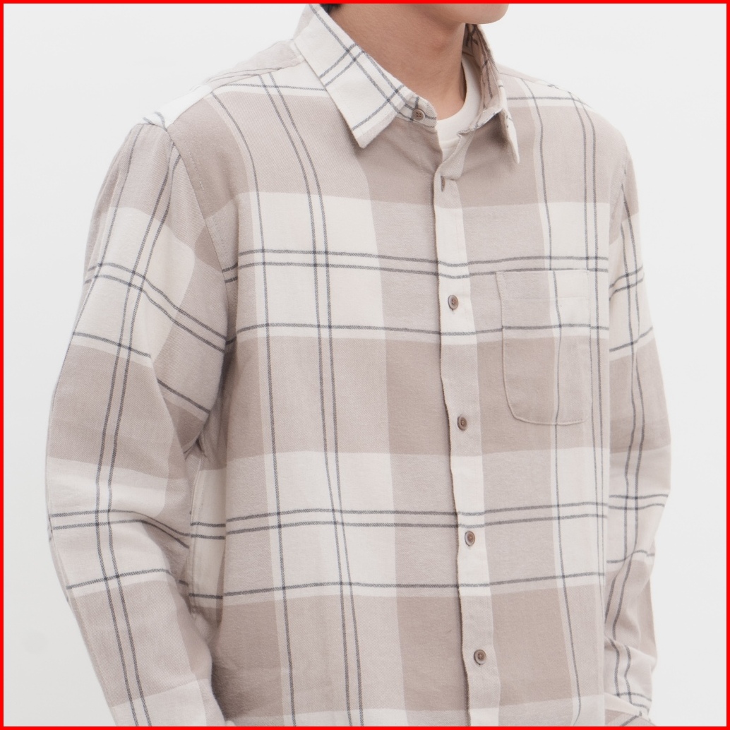 M231 Kemeja Pria Flannel Panjang Cream 0302