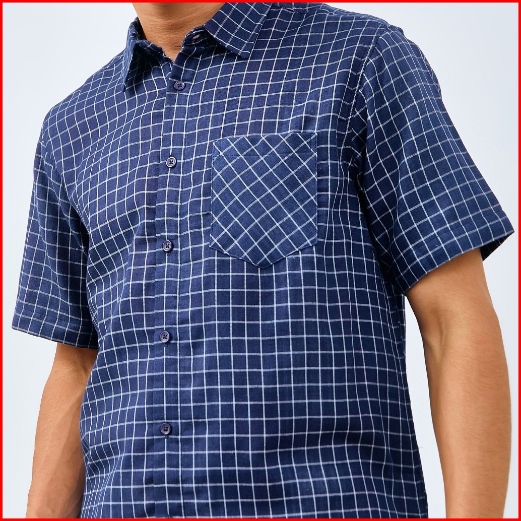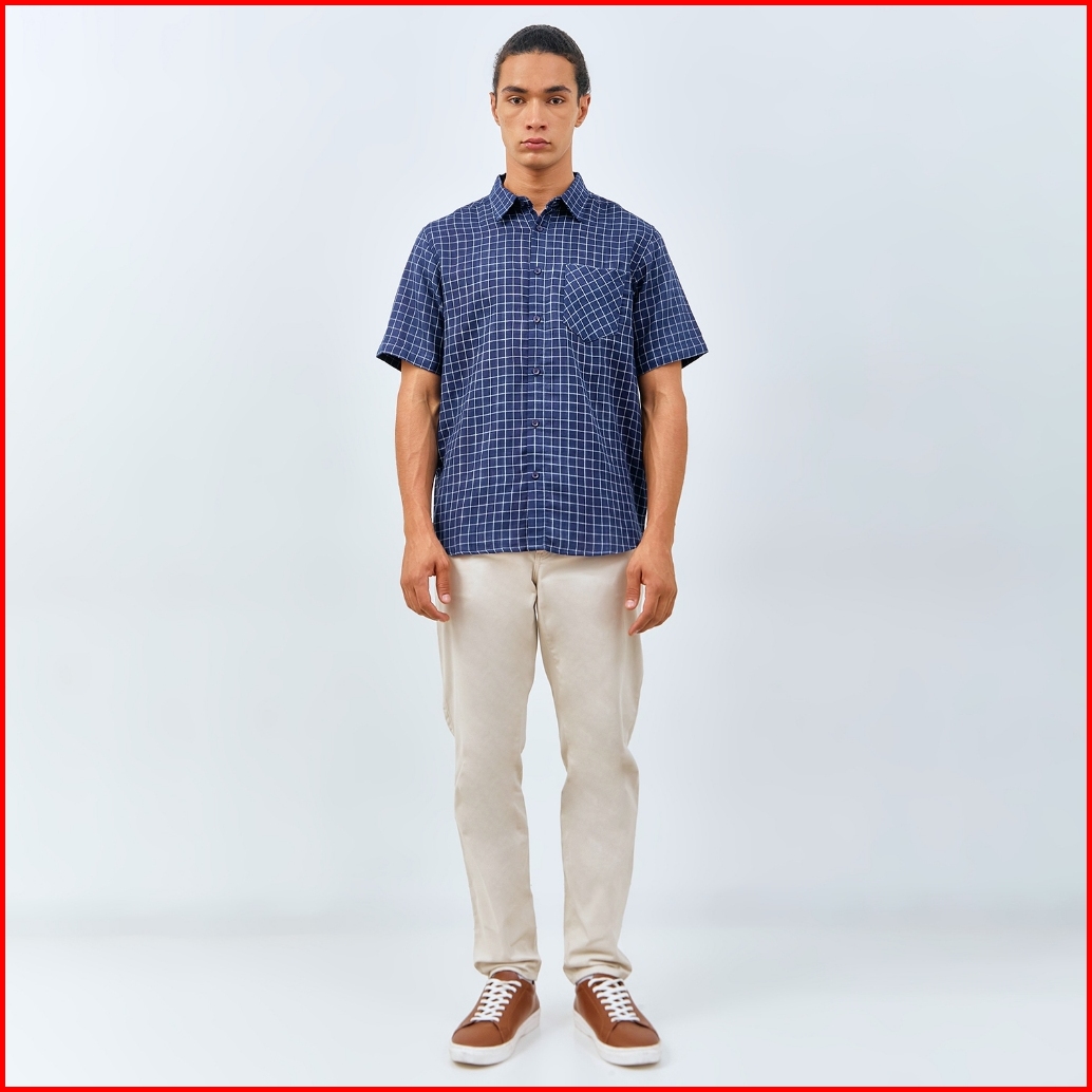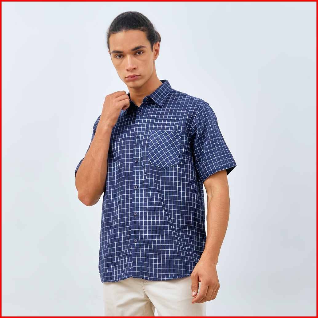 M231 Kemeja Pria Yarn Dyed Double Face Kotak Pendek Navy 3065